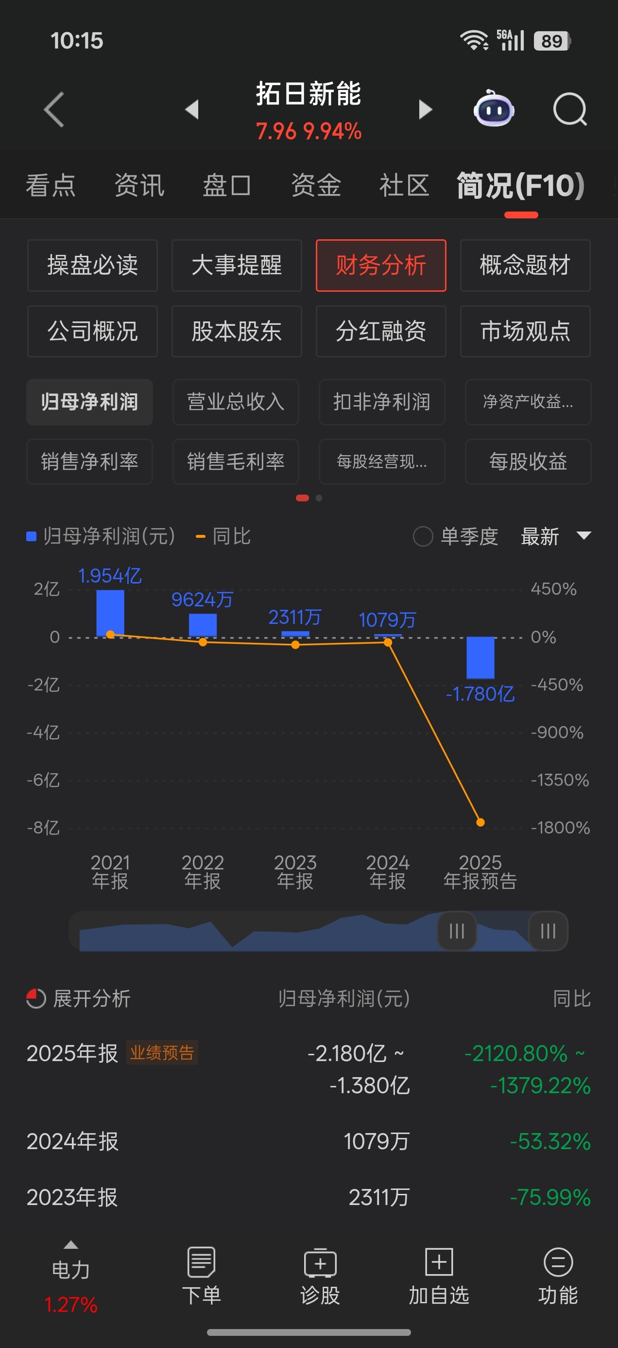 股票其实不看业绩,主要靠概念,拓日新能从8块6跌到2块多,业绩亏损1个多亿!现在