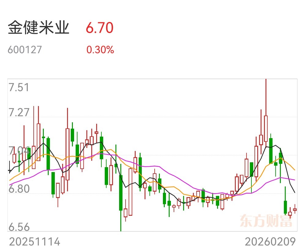 金健米业股票价格型态欣赏。2026年2月9日收市,时序静态观。风地观,上九云:观