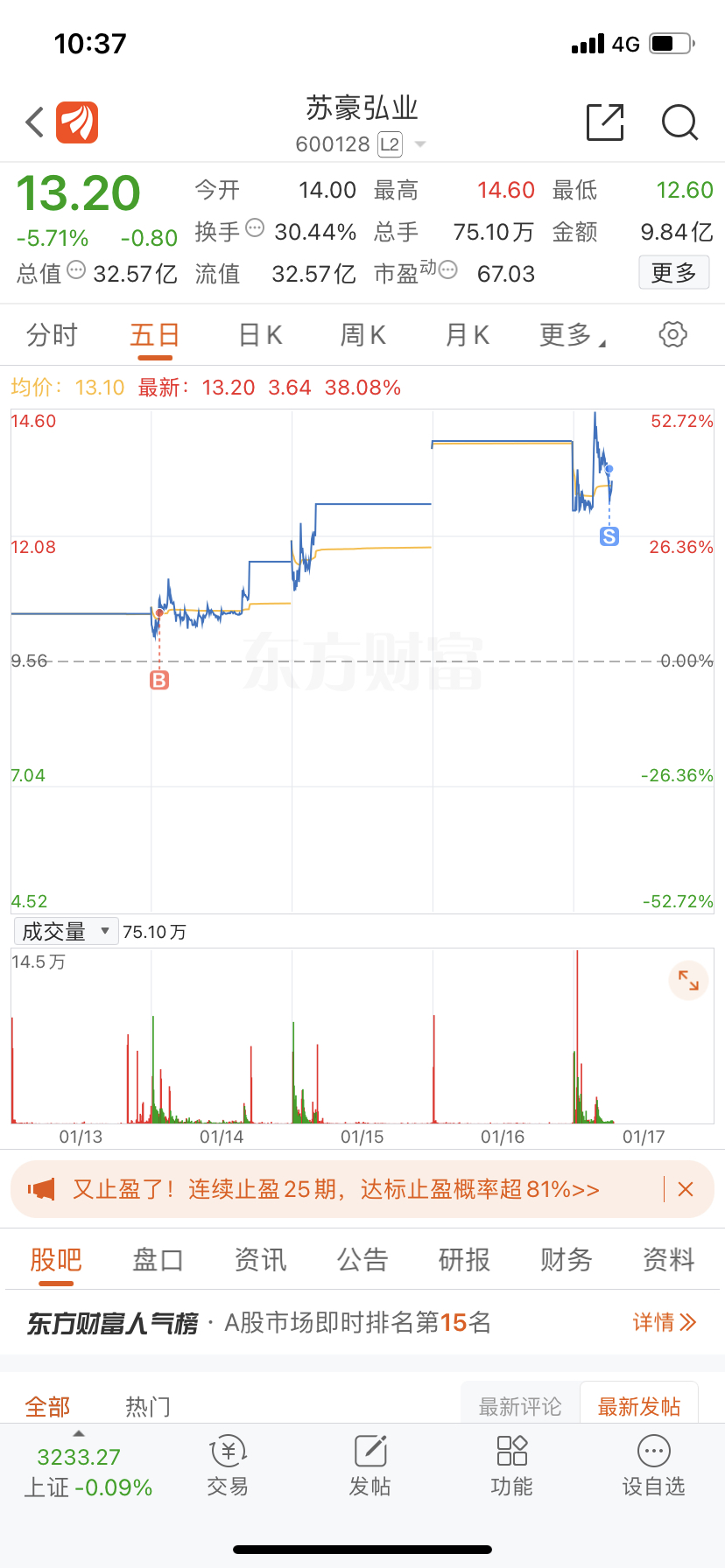 $苏豪弘业(SH600128)$ 命不久矣,