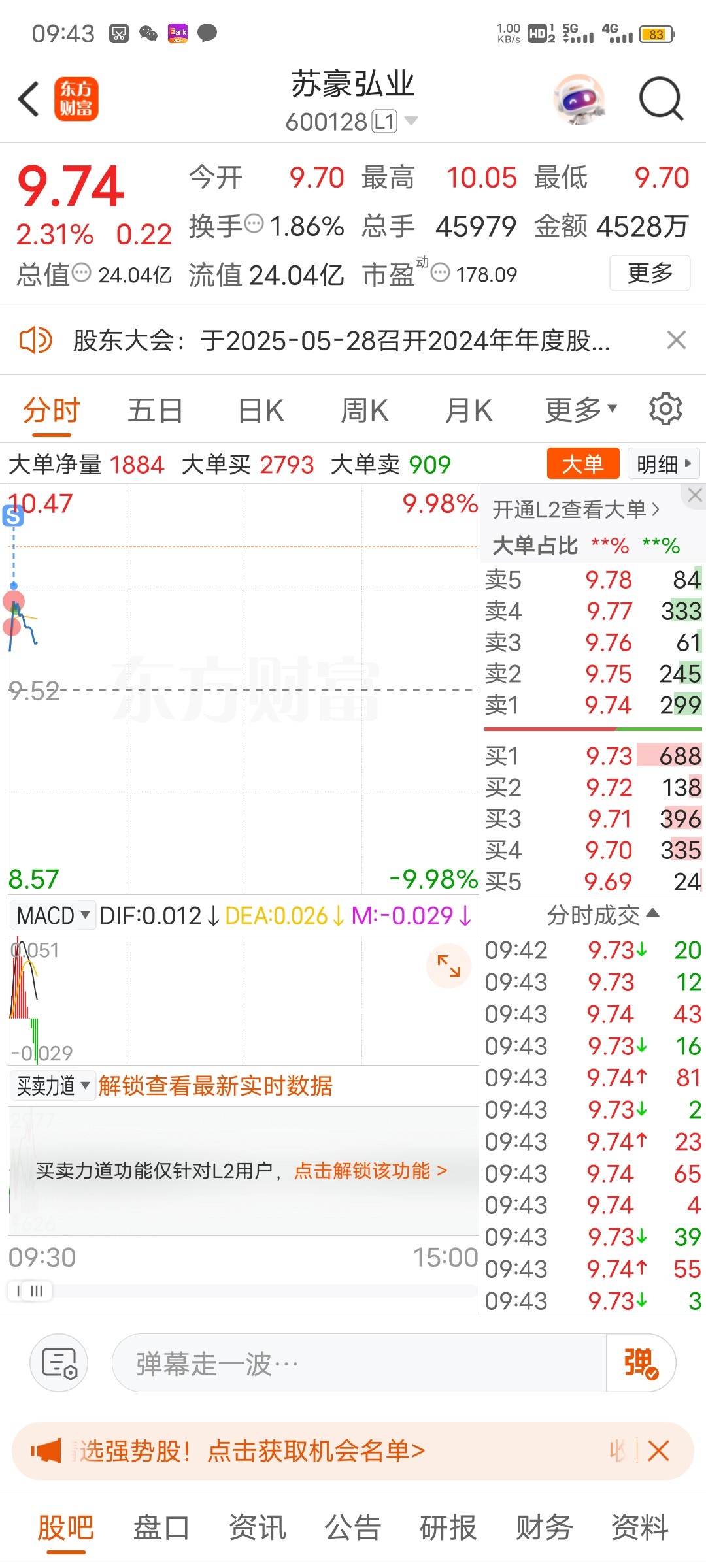 $苏豪弘业(SH600128)$ 高开就跑,哈哈,尾盘在进。