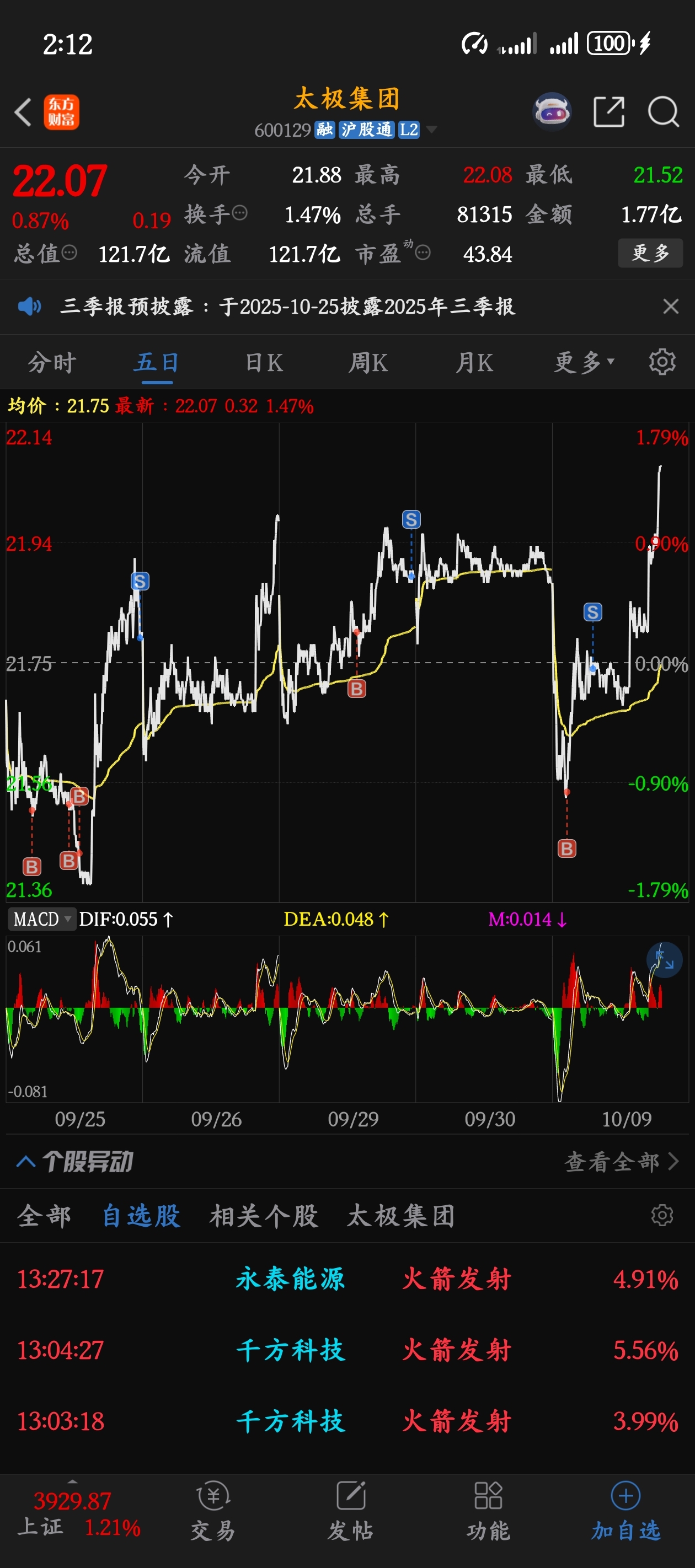 $太极集团(SH600129)$ 我一般T一个点,看来是T飞了