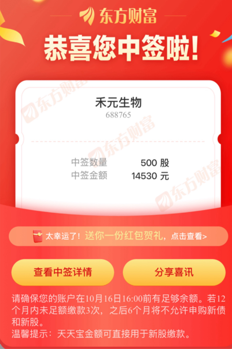 兄弟们我中奖了,今年第二个了,这次竟然中科创板了