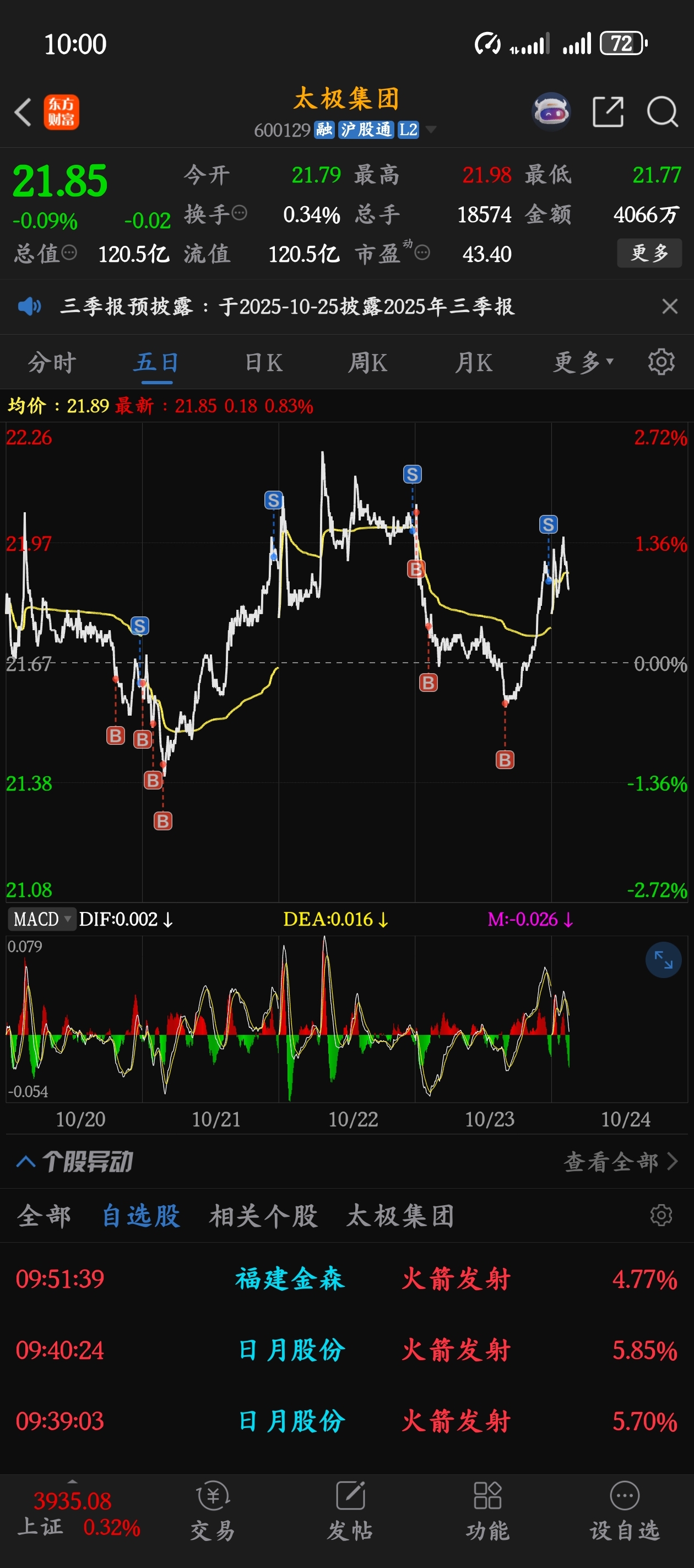 $太极集团(SH600129)$ 万五手续费疯狂摩擦,从此5日线下方才买,上方不买,