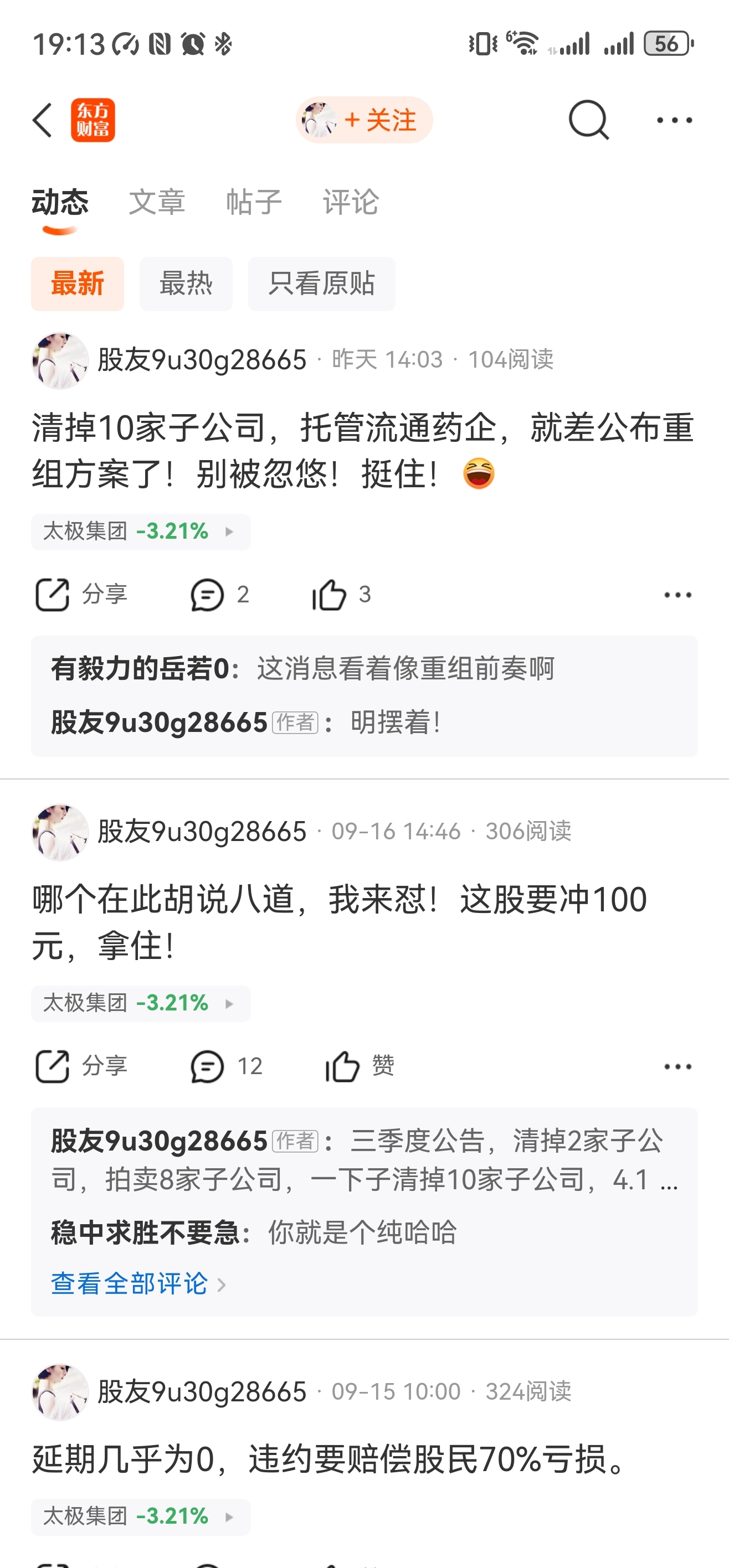 就是这个账号,啥也不懂只会胡说八道,而且还没素质,告诉你,你这样的人永远发不了财,你这种品质低下的人,不会有好结果,从太极出来的时候就推荐买三博脑科乐,目前快6个点到手,还不错