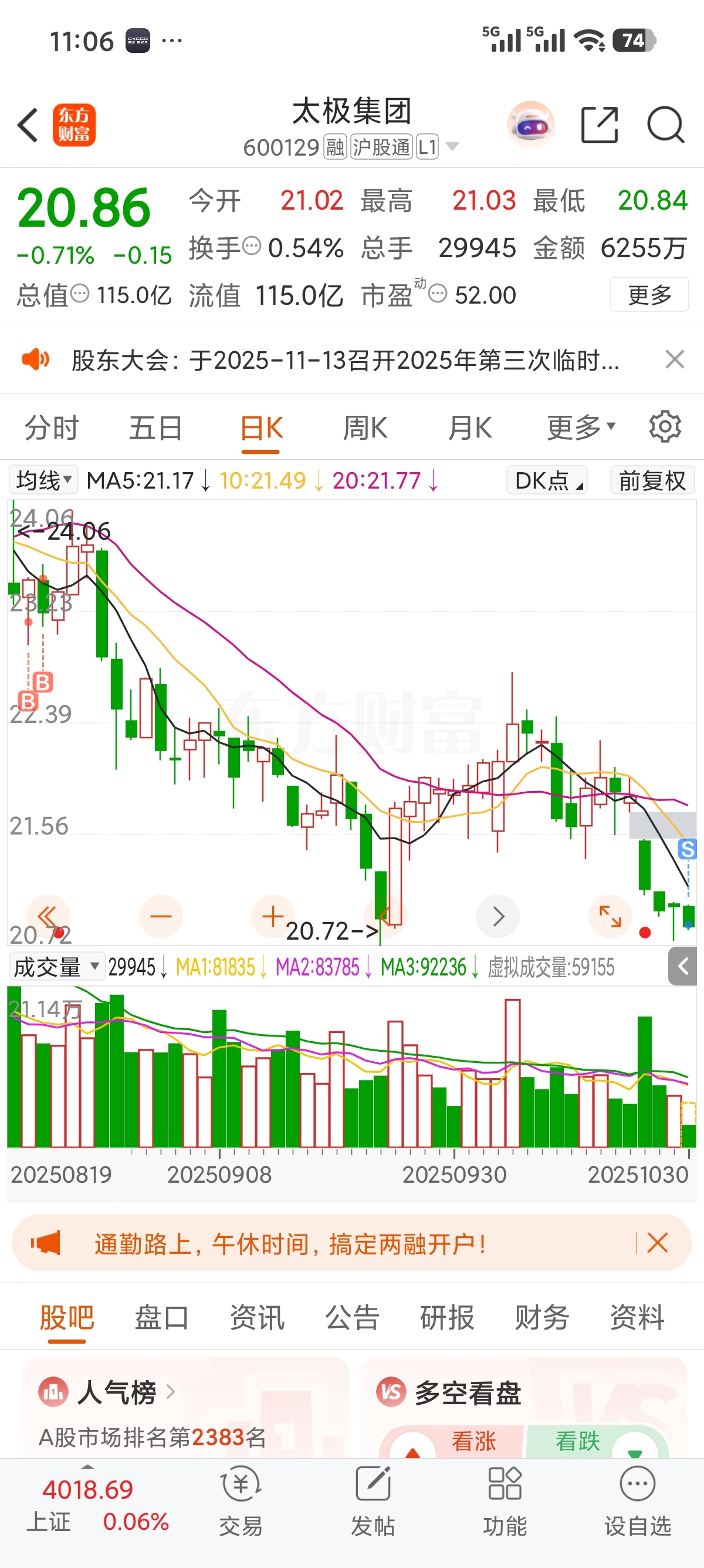 $太极集团(SH600129)$ 满仓满融,扛不住了。