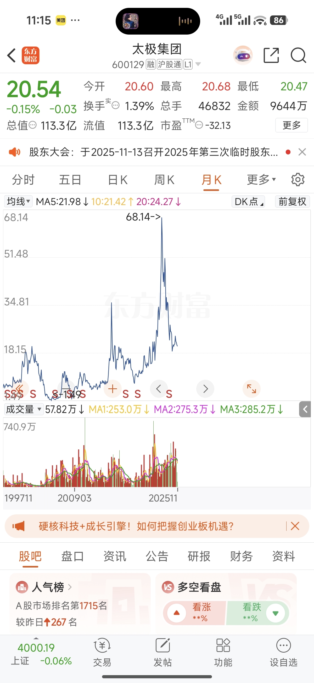 $太极集团(SH600129)$ 下跌趋势,还没到底,还要跌