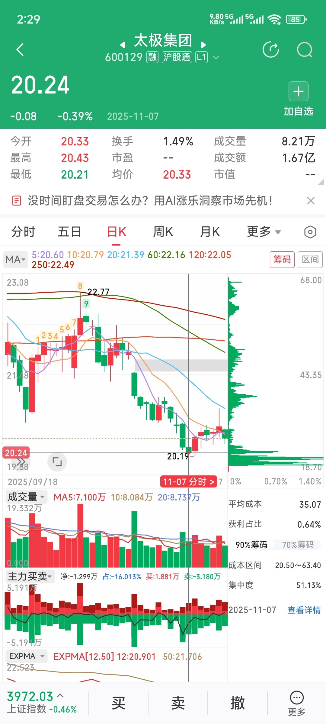 $太极集团(SH600129)$ 天啊,几乎全部套牢,哪个主力敢来拉呀