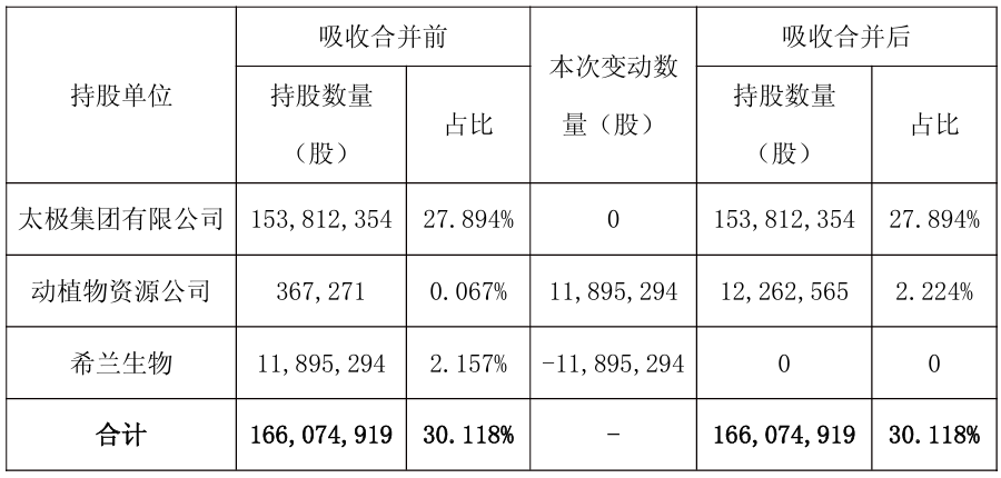 太极集团股东整合:37万股“吞”下1190万股,动植物资源公司持股增至2.224%