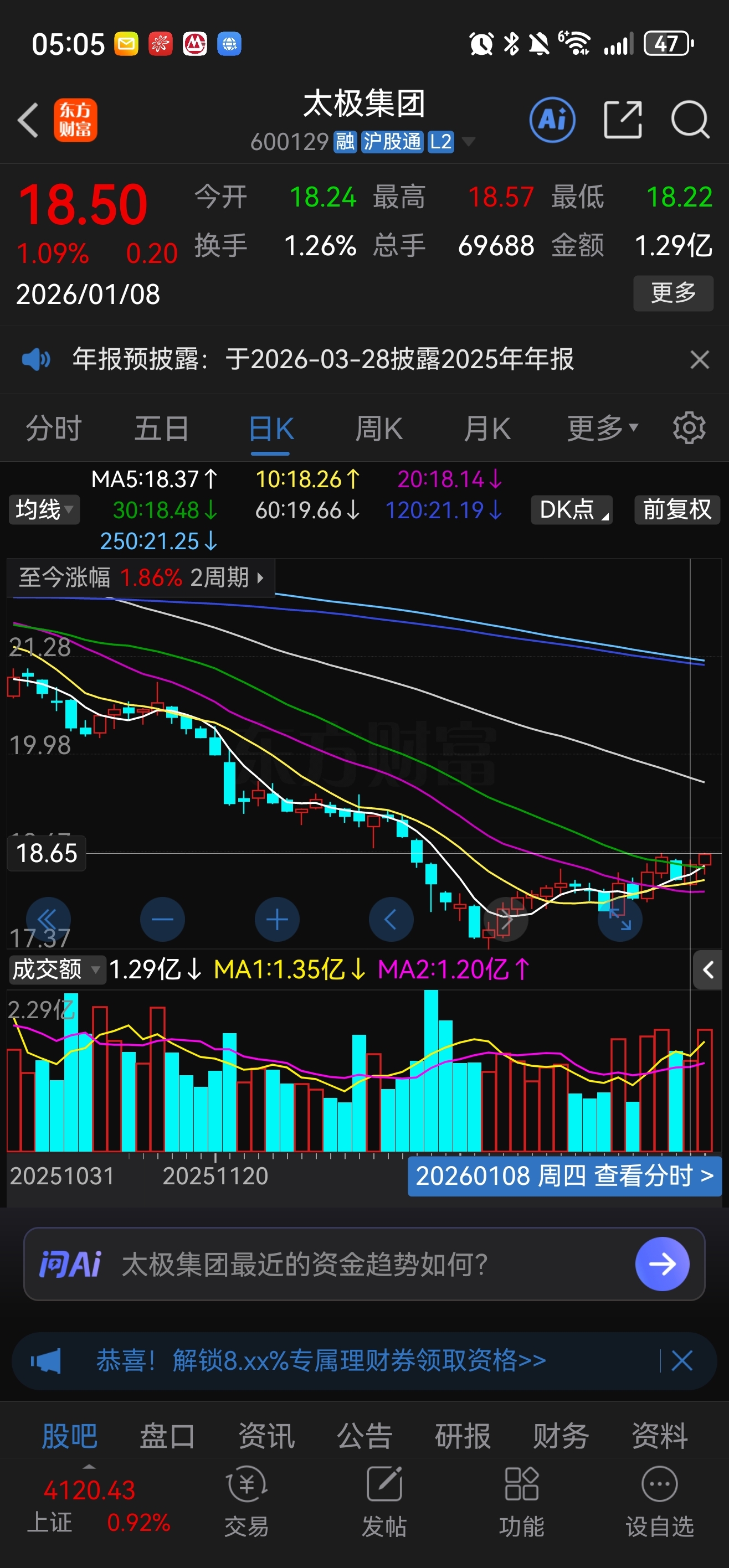 $太极集团(SH600129)$ 下周要开始走突破了,周一可能会被量化先打到19.2附近!