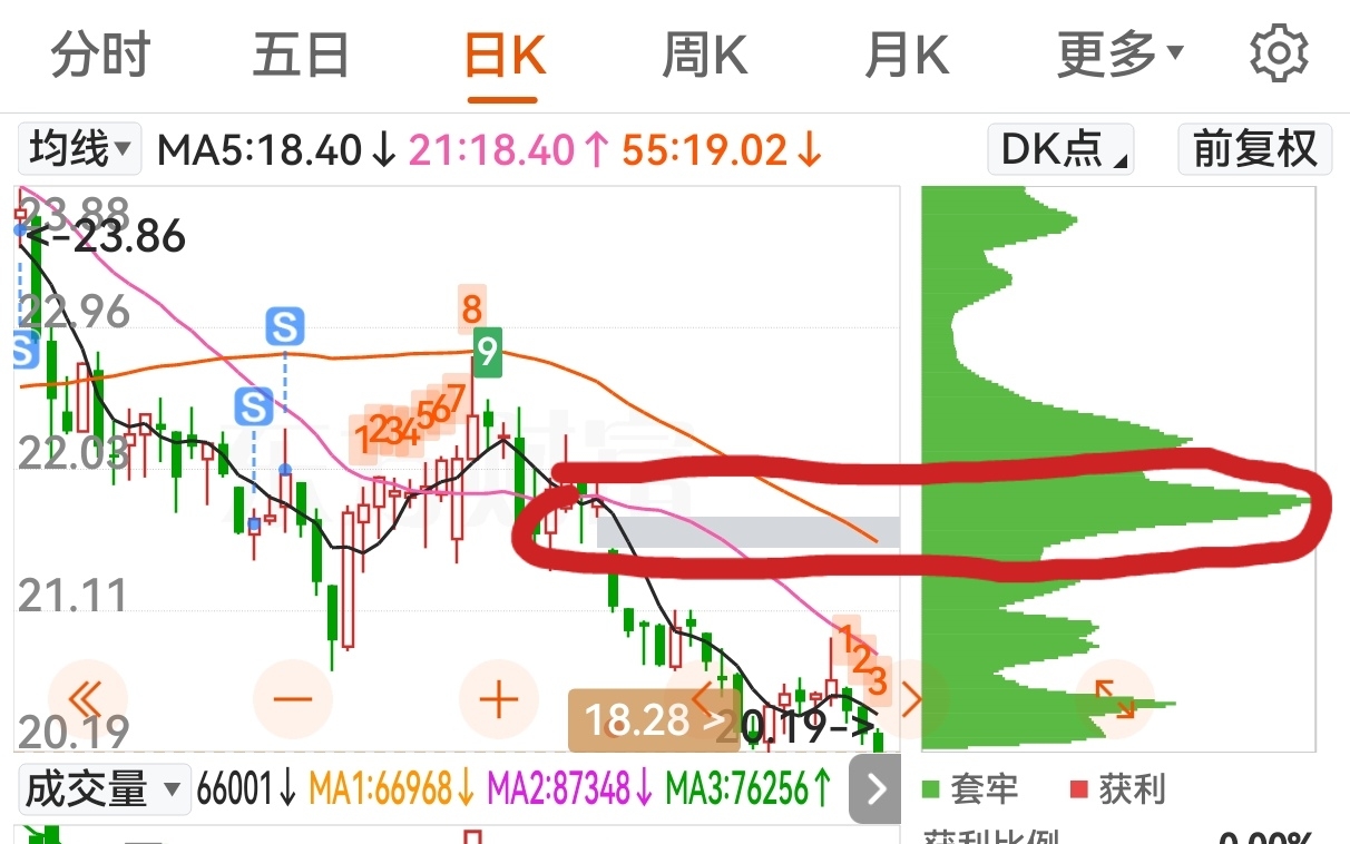 当初接我盘这个地方的筹码峰22左右,体量连续半年不变,什么时候变小了,我就不看空