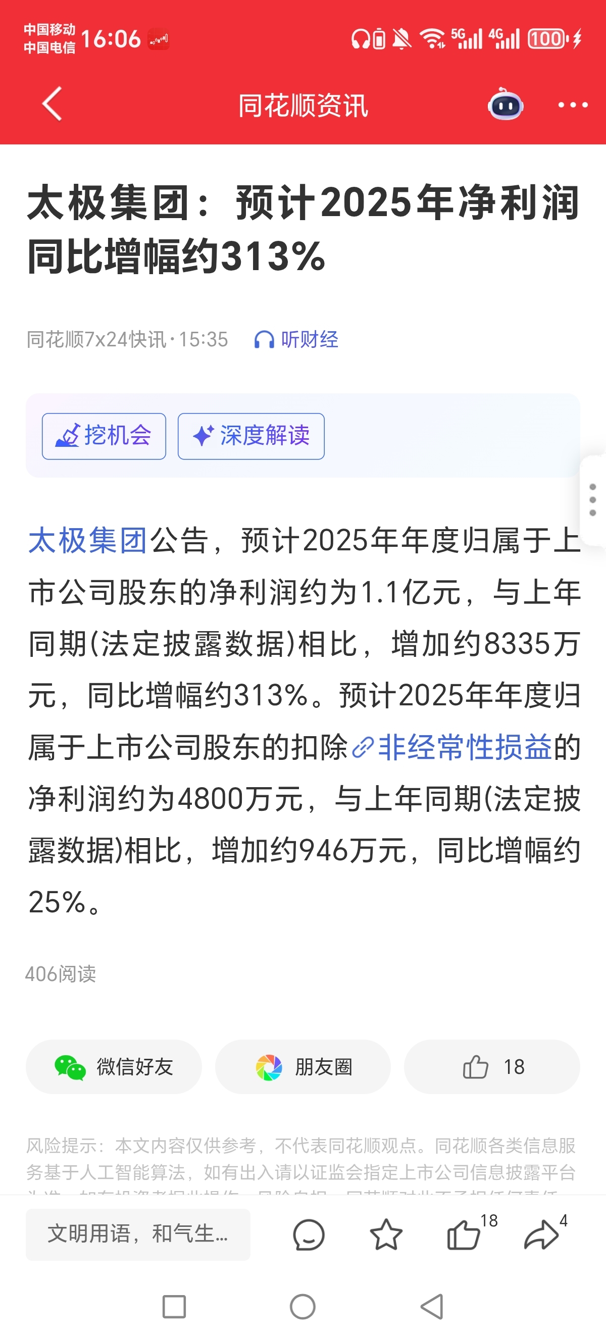 $太极集团(SH600129)$ 终于把你等来了,至少不亏损,我这颗悬着的心也算放下了…看25年同期大概在2月中旬开始上涨…慢慢熬,我今年都陪你,不到22.20我不出