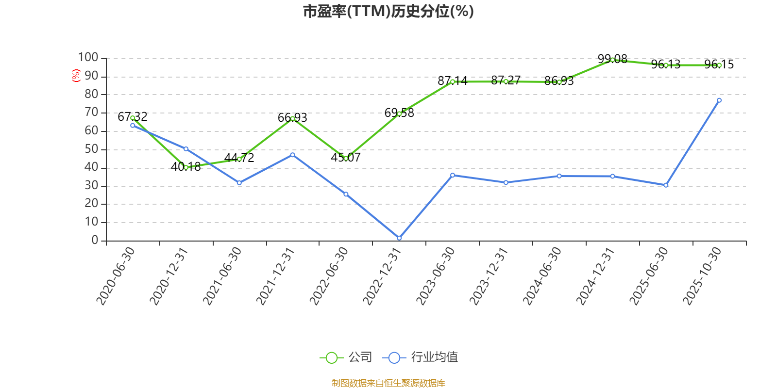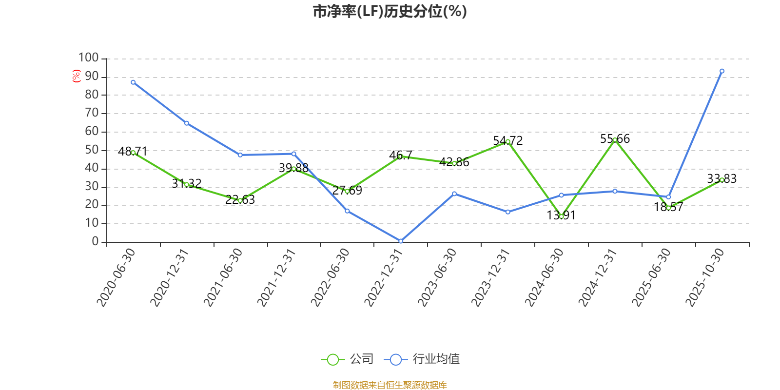 市盈率、市净率为负时,不显示当期分位数,会导致折线图中断。
