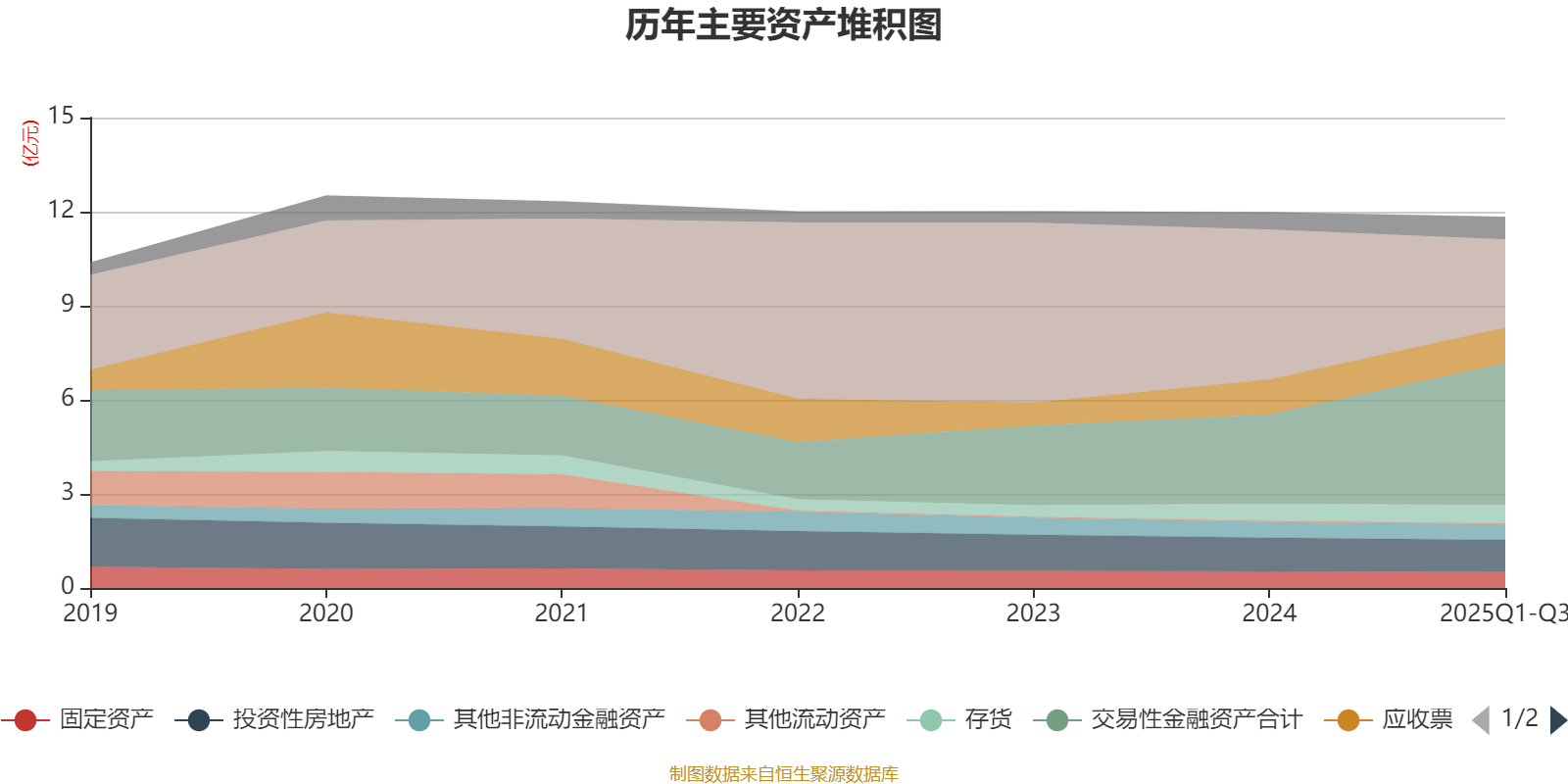 资产重大变化方面,截至2025年三季度末,公司货币资金较上年末减少41.07%,占公司总资产比重下降16.08个百分点;交易性金融资产合计较上年末增加58.78%,占公司总资产比重上升14.45个百分点;应收款项融资较上年末增加71.17%,占公司总资产比重上升0.77个百分点;其他应收款(含利息和股利)较上年末增加133.51%,占公司总资产比重上升0.47个百分点。