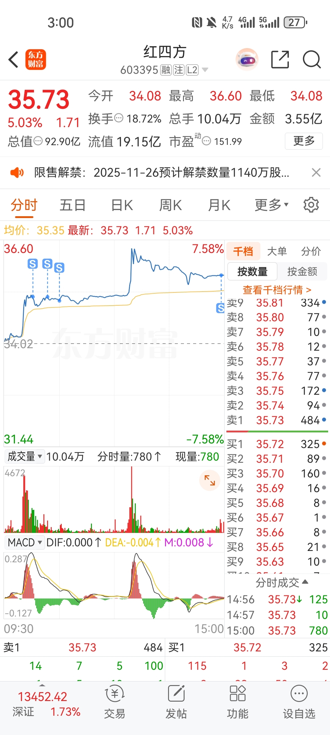 $*ST波导(SH600130)$ 等到最后也没涨停