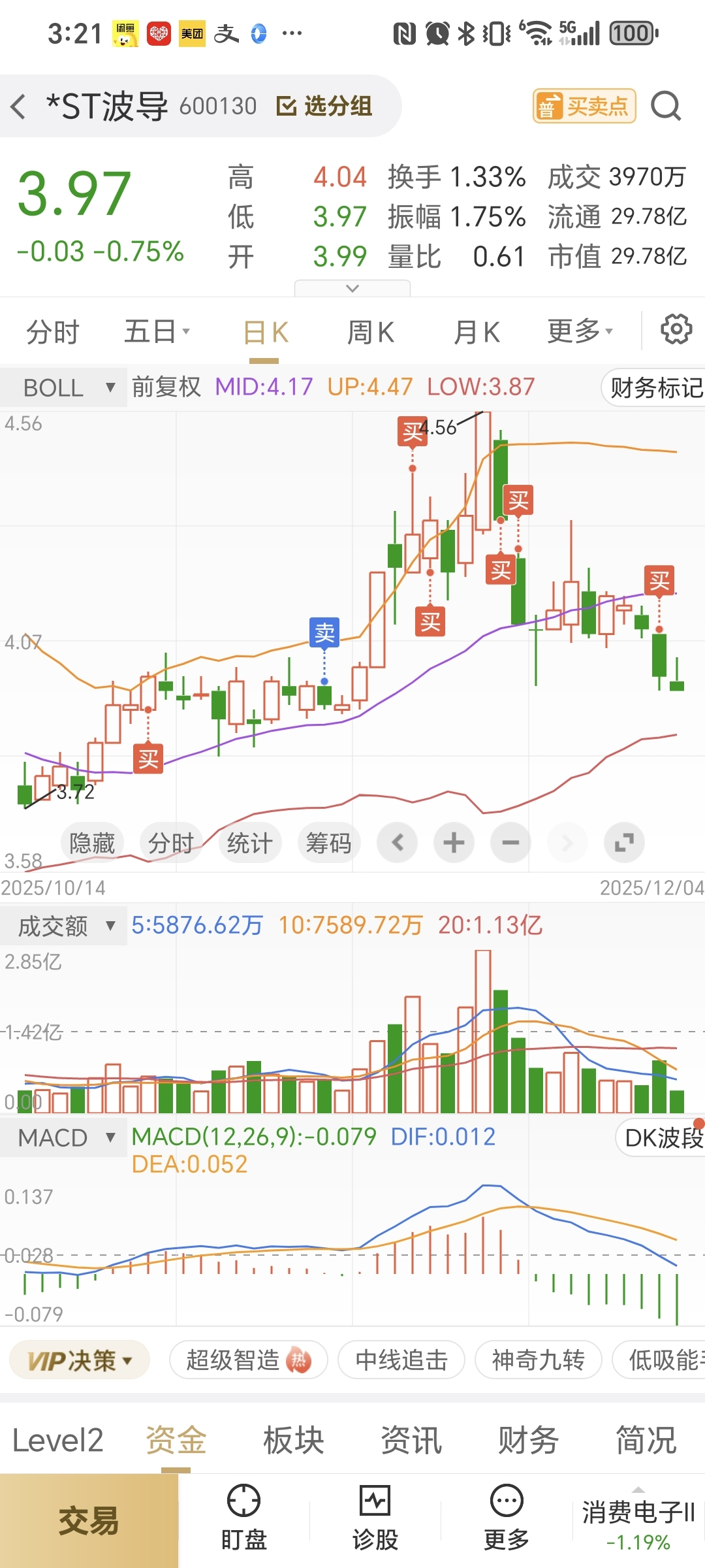 $*ST波导(SH600130)$ 真是每次都买在山顶上,一割肉就开始涨,感觉又有点想割了,明天再等一天