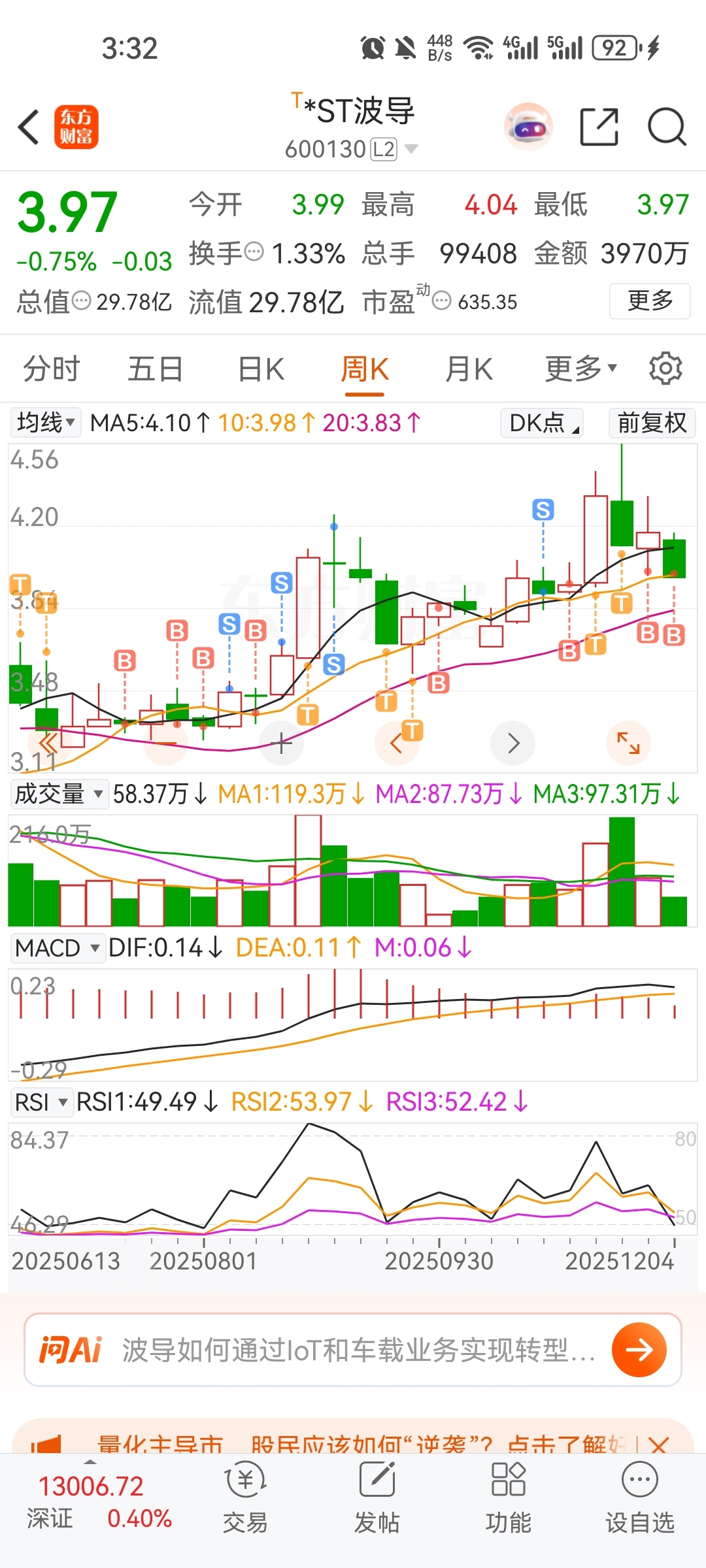 $*ST波导(SH600130)$ 今天又加点仓位,场外大v都虎视眈眈盯着波导,估计跌不动啥了,估计还得洗些日子,月底差不多启动。