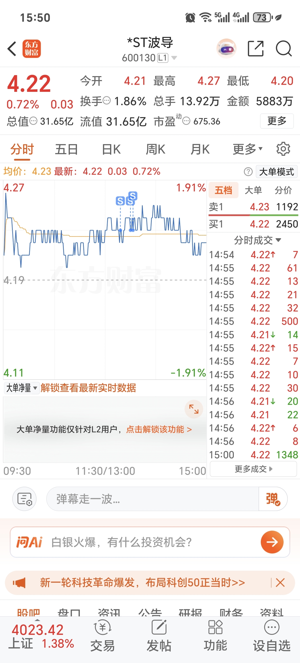 $*ST波导(SH600130)$ 顶不住了,下午跑了,祝你们发大财
