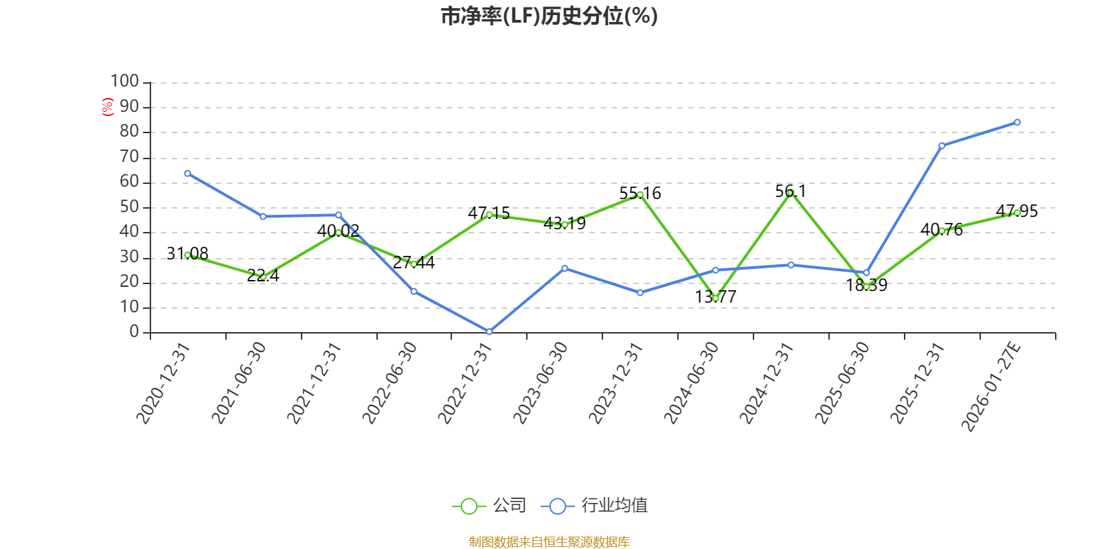 市盈率、市净率为负时,不显示当期分位数,会导致折线图中断。