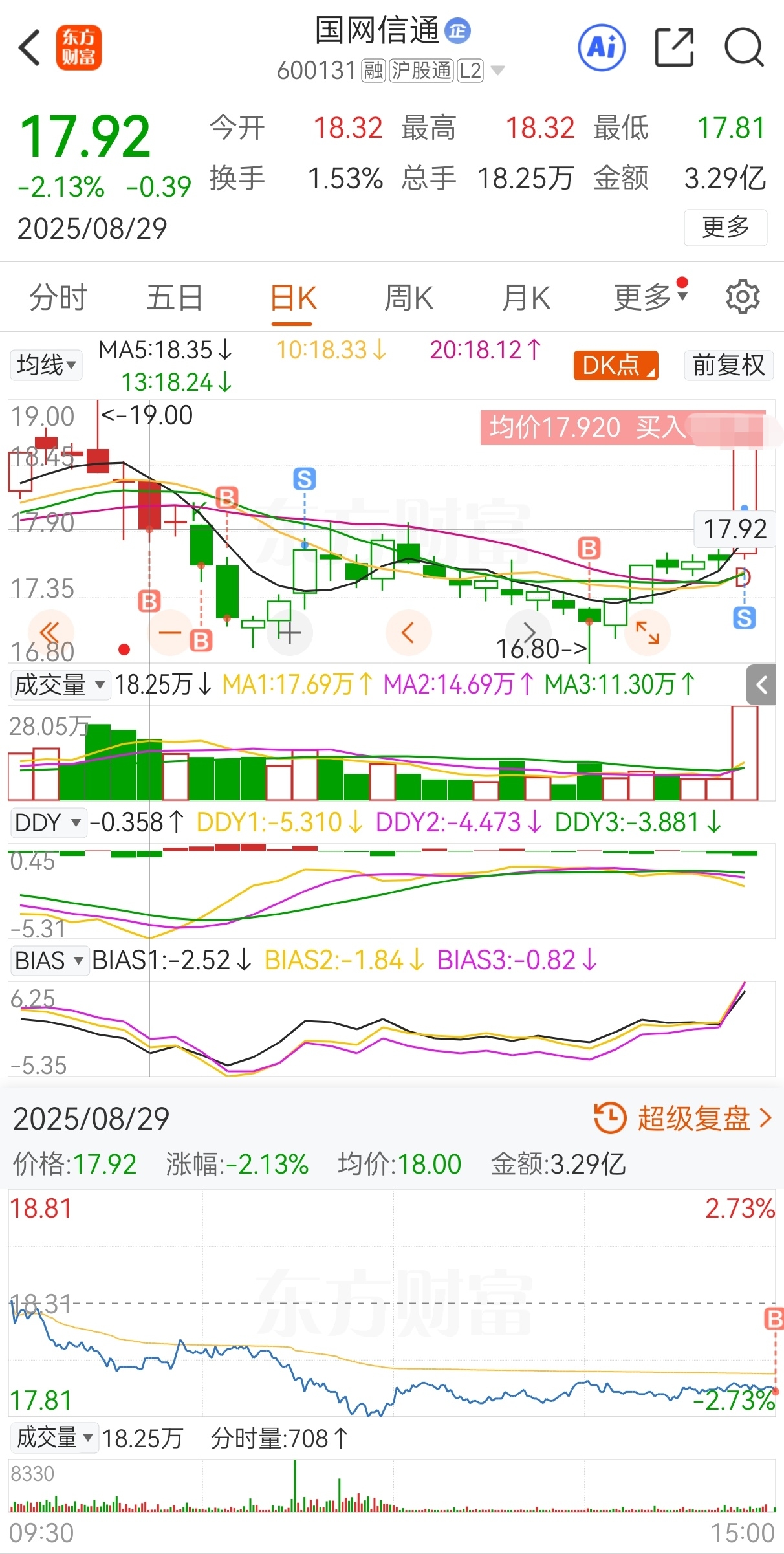 $国网信通(SH600131)$ 原计划今买明卖,实际17.92买,17.62加仓,17.18再加仓,17.79减仓,17.15继续加仓,17.79再减仓,18.17卖,实盘短线套利国网信通,成功收米走人!