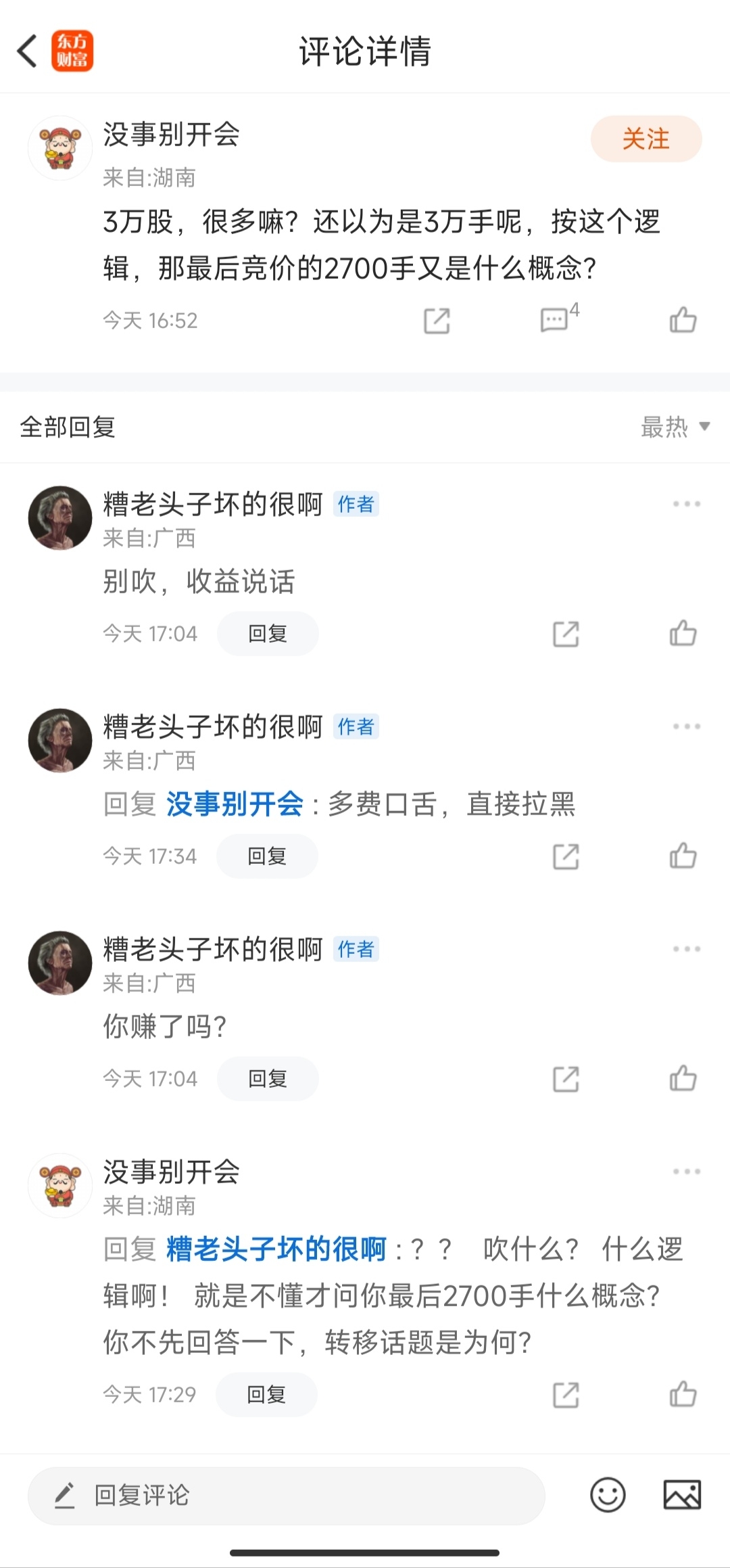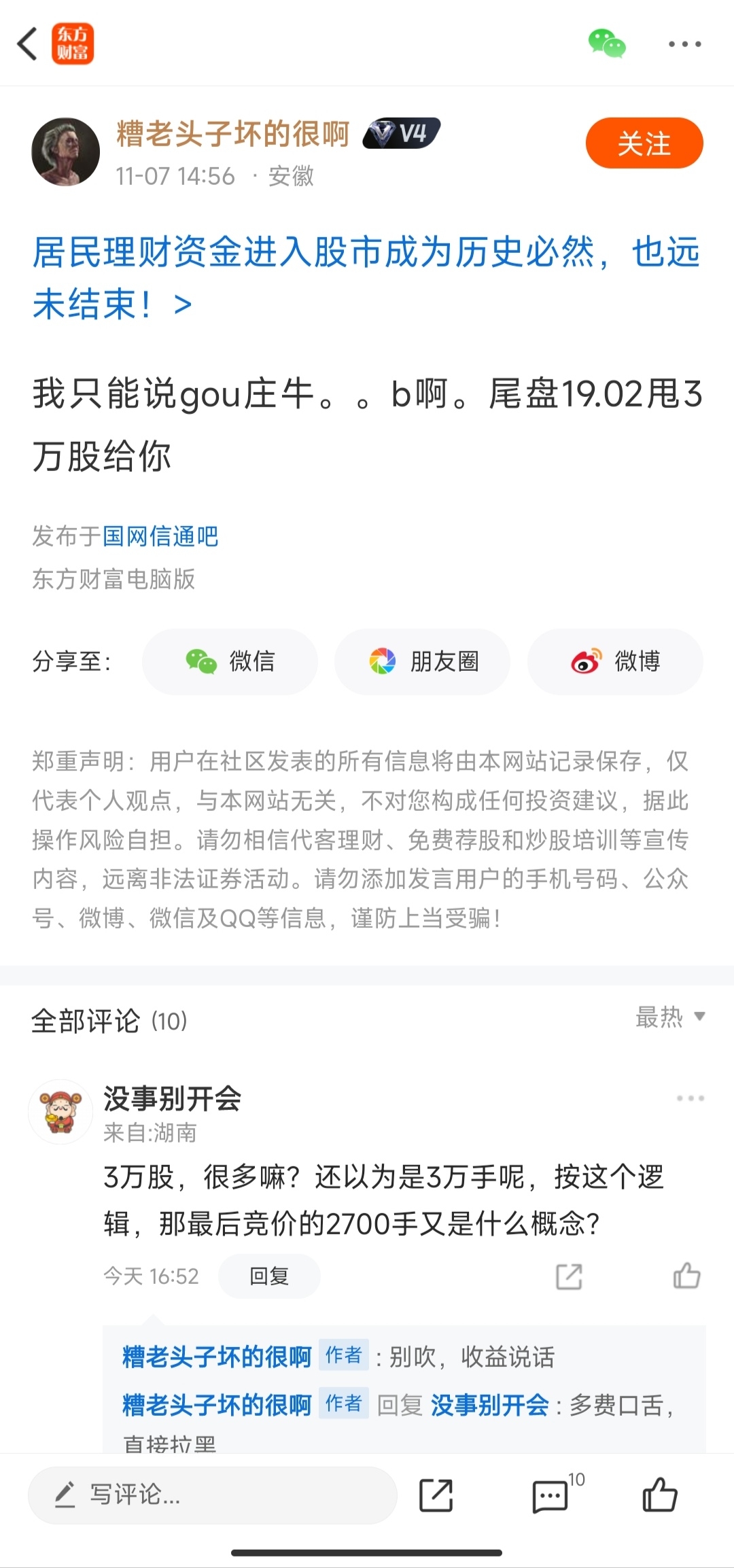 温馨提示: 1.根据《证券法》规定,禁止编造、传播虚假信息或者误导性信息,扰乱证券市场;2.用户在本社区发表的所有资料、言论等仅代表个人观点,与本网站立场无关,不对您构成任何投资建议。用户应基于自己的独立判断,自行决定证券投资并承担相应风险。《东方财富社区管理规定》