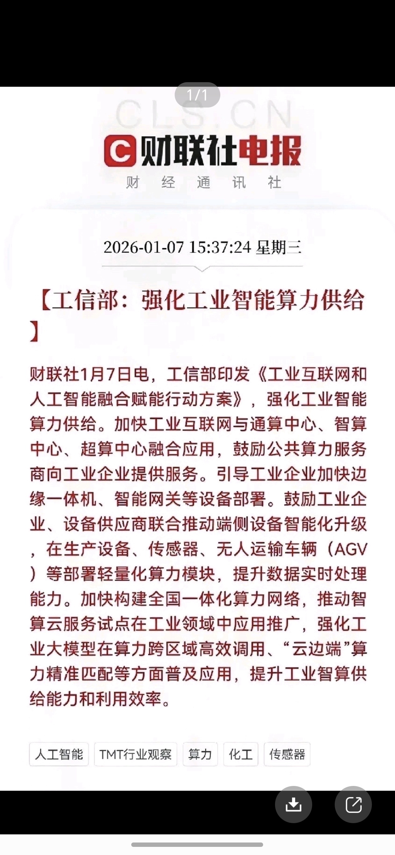 $国网信通(SH600131)$ 盘后消息工信部将大力推动工业互联网与人工智能的深度融合,核心抓手是强化工业智能算力的供给。这意味着,未来在通算、智算、超算中心的协同,边缘计算设备的部署,以及端侧设备的智能化升级等方面,会有大量的政策支持和市场机会。
