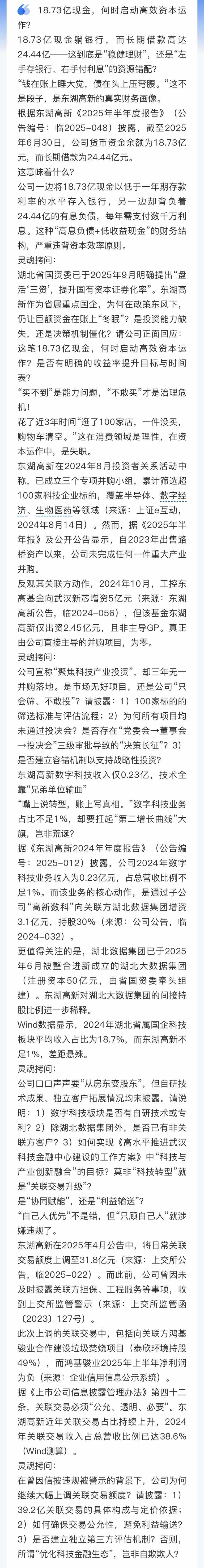 以东湖高新(600133.SH)为例,公司账面货币资金较为充裕,达18.73亿元,但近年来在产业投资与战略并购方面进展有限。其数字科技业务收入占比较低,技术合作多依赖关联方,自主创新能力有待提升。同时,公司管理层变动较为频繁,战略执行的连续性受到一定影响。