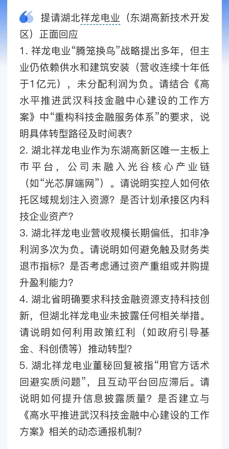 需要强调的是,2025年是国企改革深化推进的关键年份,政策层面鼓励国有上市公司通过并购重组提升核心竞争力。对于东湖高新、祥龙电业这类具备区域平台属性的企业而言,未来若能在资产注入、产业协同方面取得突破,或将成为价值重估的契机。