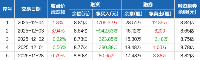 东湖高新:融资净买入1709.32万元,融资余额8.81亿元(12-04)