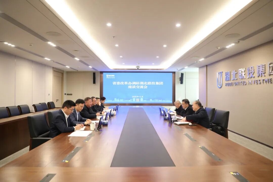 12月9日,省委改革办赴湖北联投集团调研,省政府参事钱远坤一行与集团党委书记、董事长刘俊刚等座谈交流。省政研会常务副会长章新国、省委改革办处长许海涛,集团党委委员、副总经理胡黎明参加调研座谈。