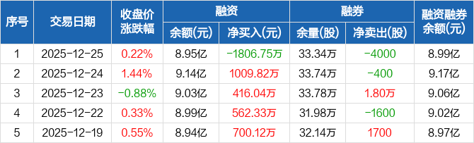 东湖高新:融资净偿还1806.75万元,融资余额8.95亿元(12-25)