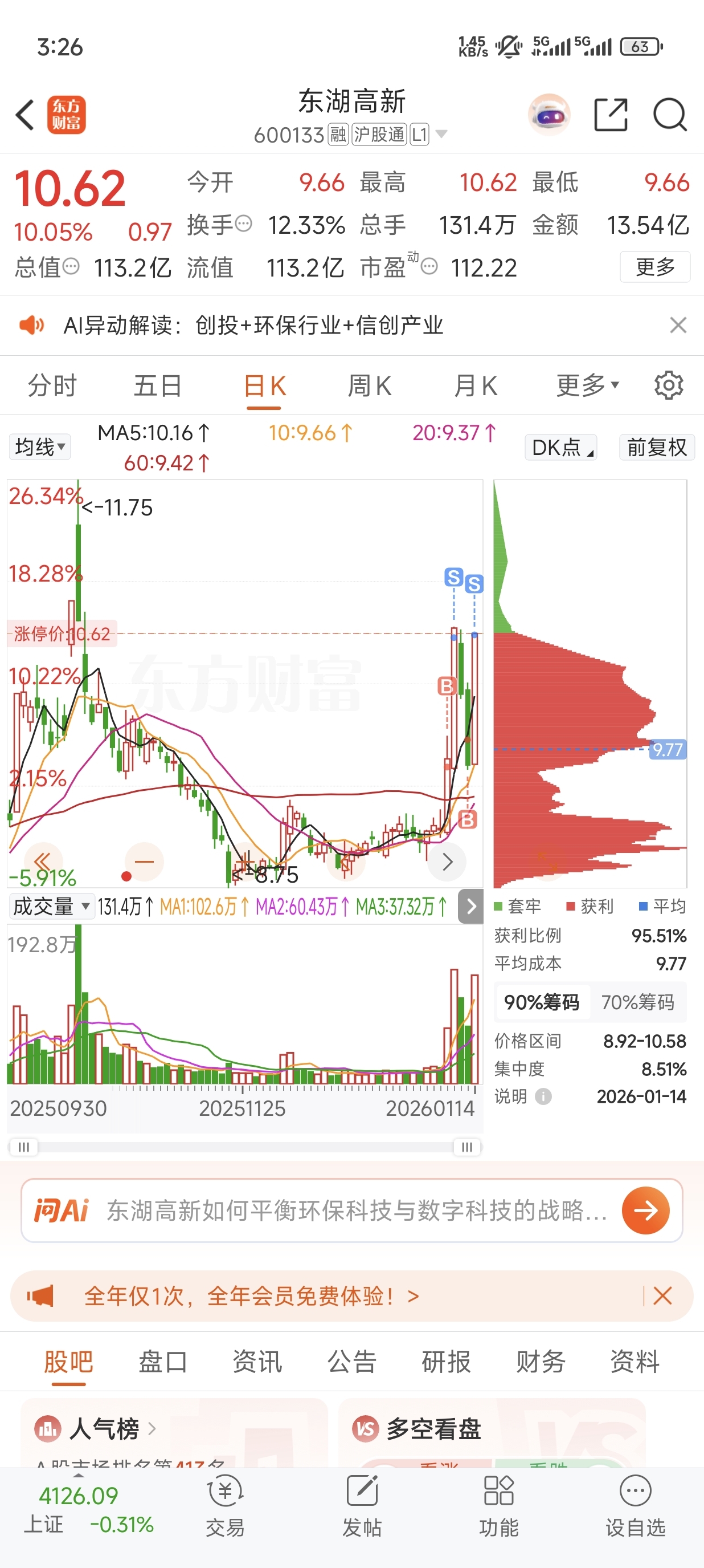 $东湖高新(SH600133)$
