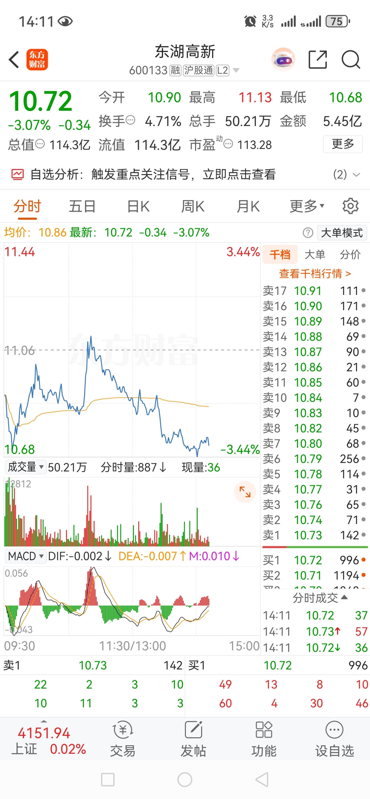 $东湖高新(SH600133)$ 上面根本没啥卖盘,下面都是托盘,这不是明显诱多吗?你买进就吃亏