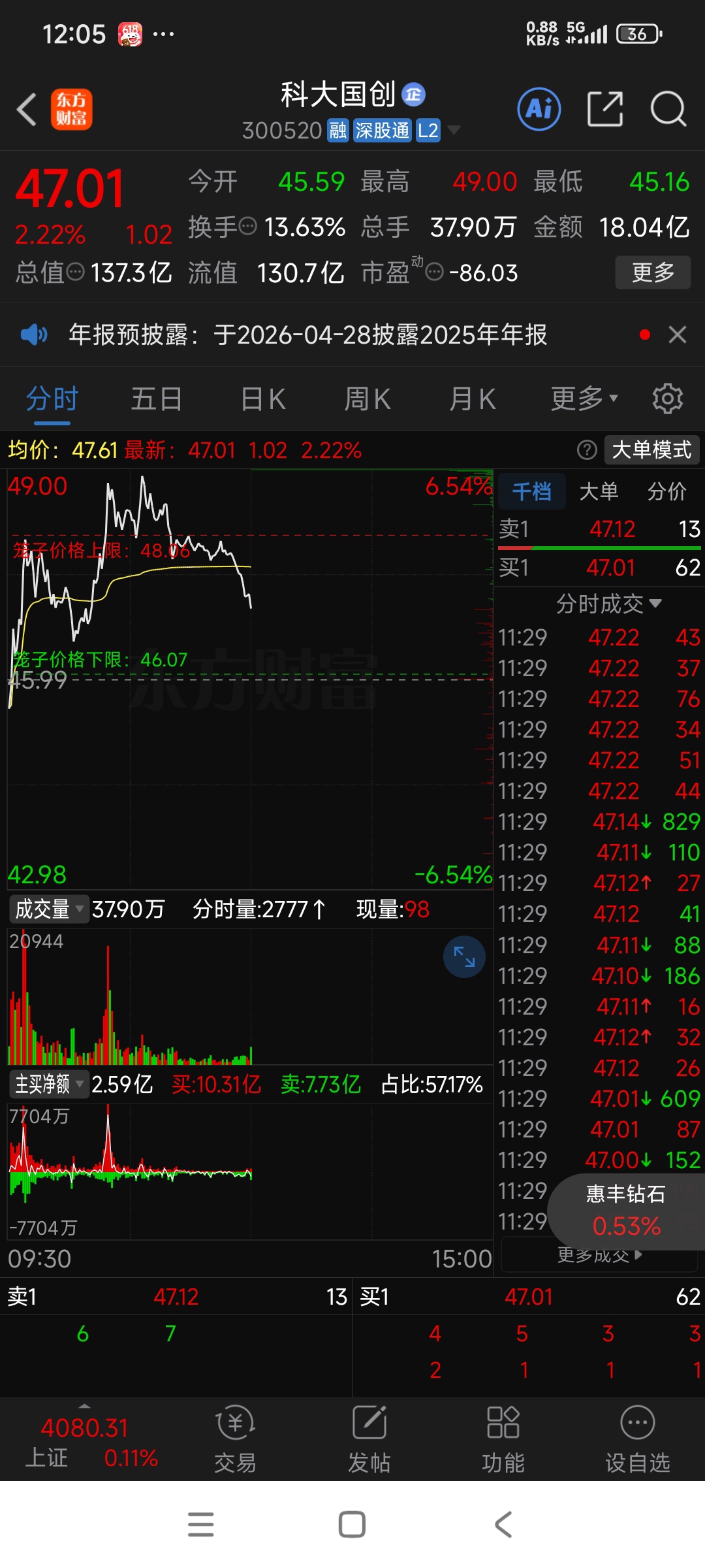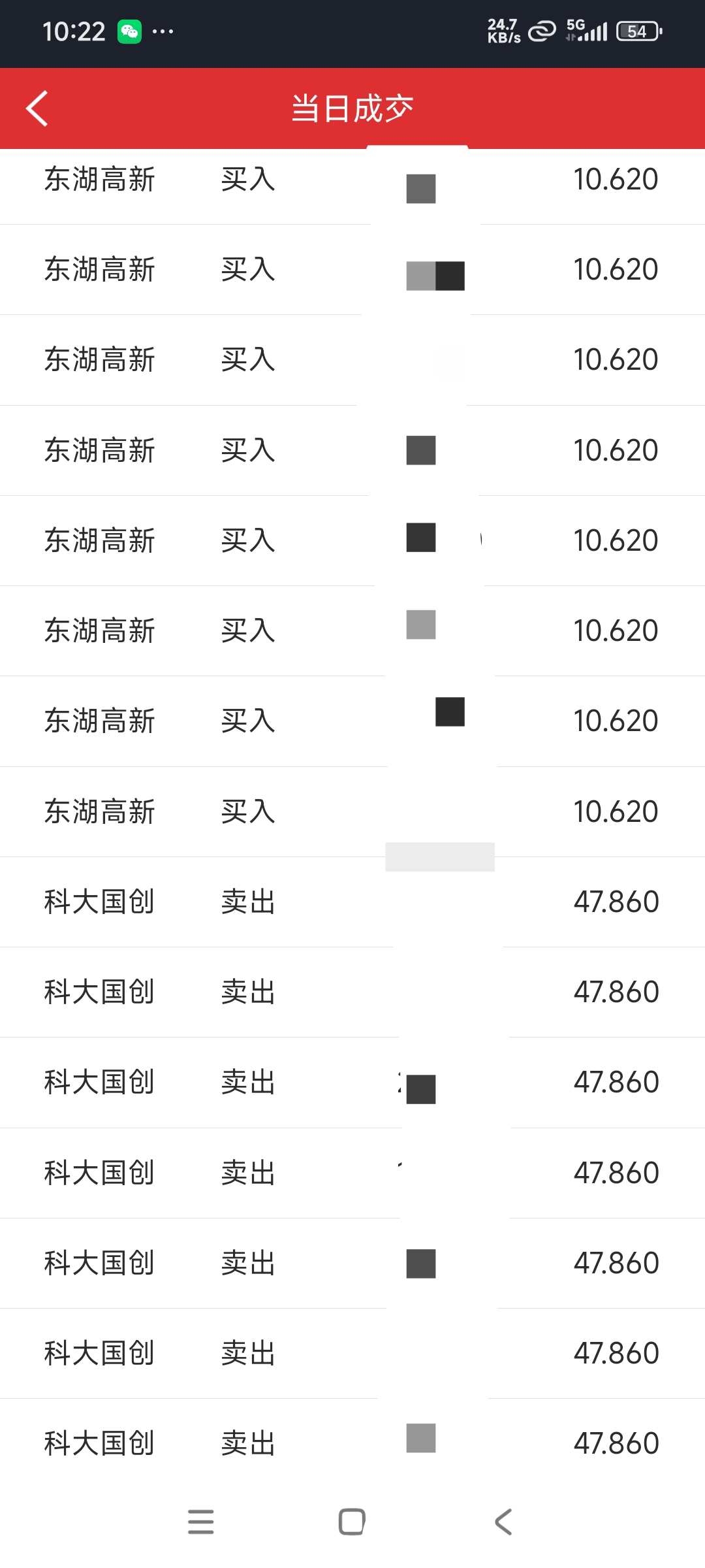 2月5号46元买的科大国创,今天47.86元买卖了,10.62元买入了些东湖高新