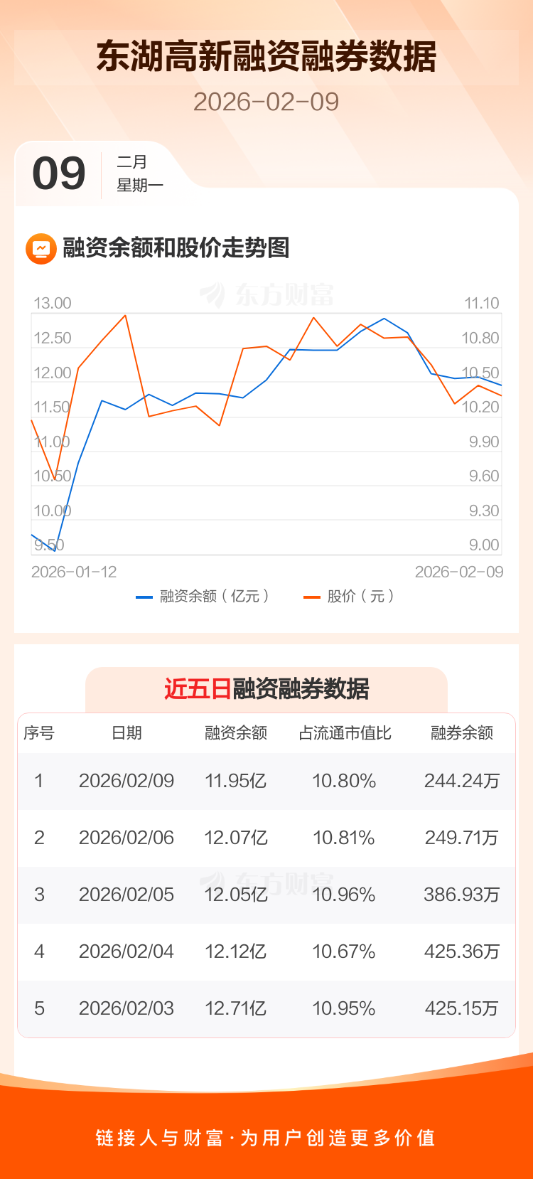 交易所最新数据显示,东湖高新于2026年2月9日获融资买入5040.30万元,融资偿还6224.61万元,当日融资净偿还1184.31万元。目前,该股融资余额11.95亿,占流通市值比例为10.80%。