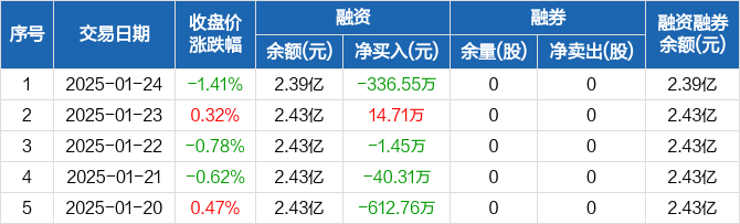 乐凯胶片:融资净偿还336.55万元,融资余额2.39亿元(01-24)
