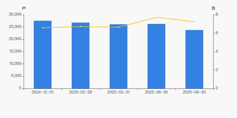 2024年12月31日至今,公司股东户数显著下降,区间跌幅为13.71%。2024年12月31日至2025年9月30日区间股价上涨10.02%。