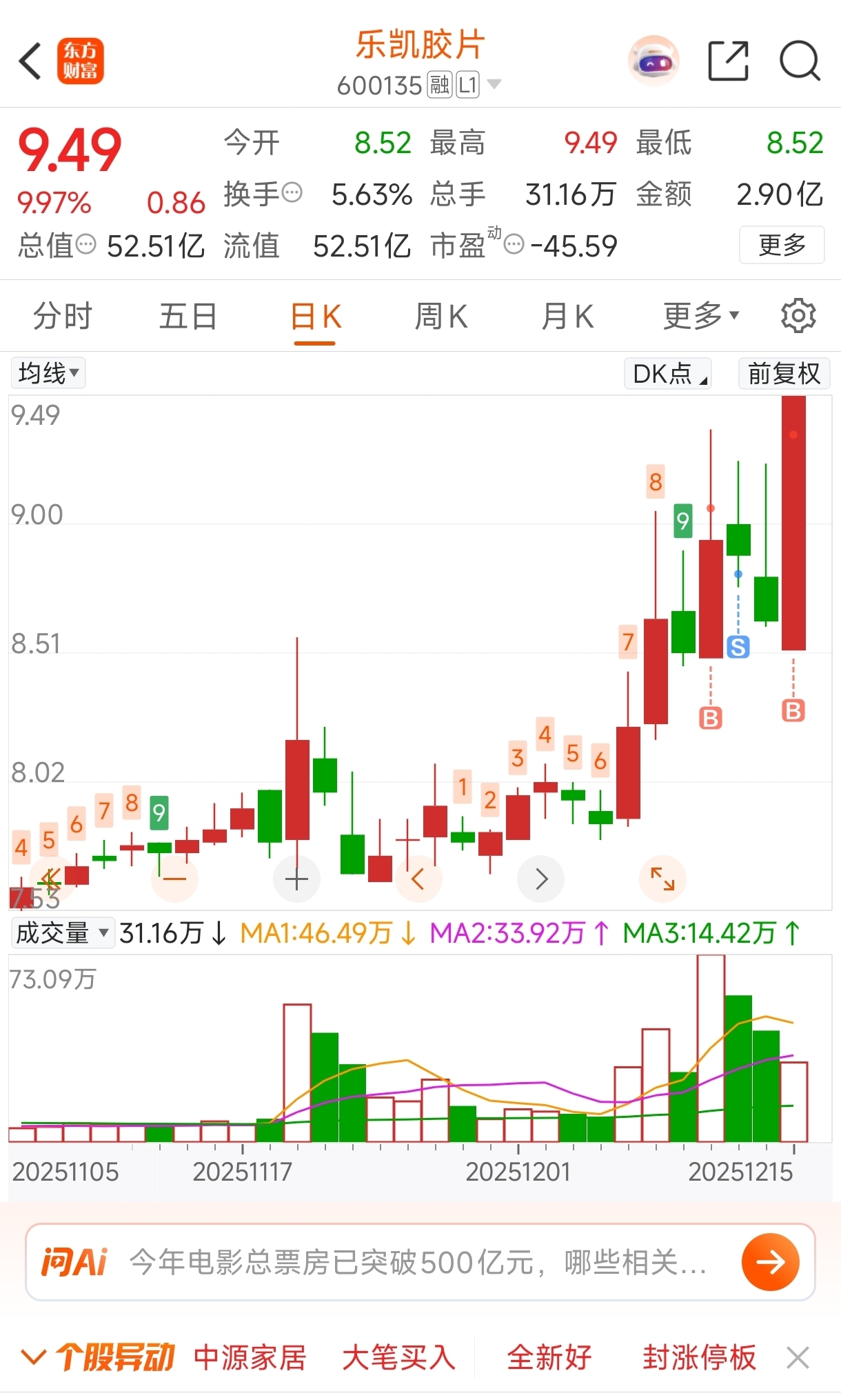 $乐凯胶片(SH600135)$ 杀个回马枪,干就完事了