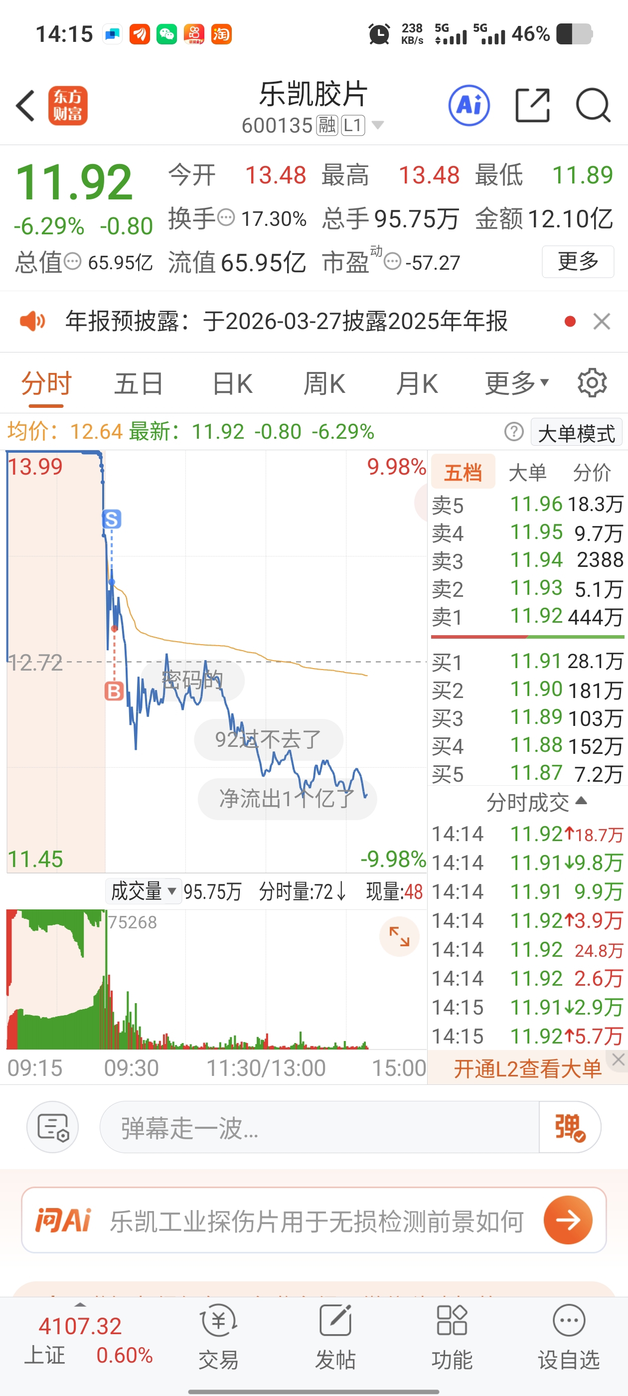 $乐凯胶片(SH600135)$ 卖对了,却买错了,