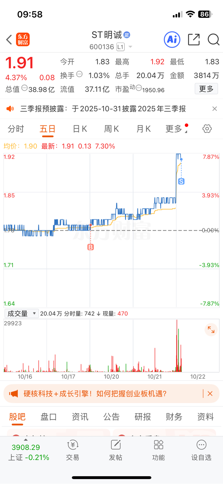 $ST明诚(SH600136)$  骗泡的玩意,我走了