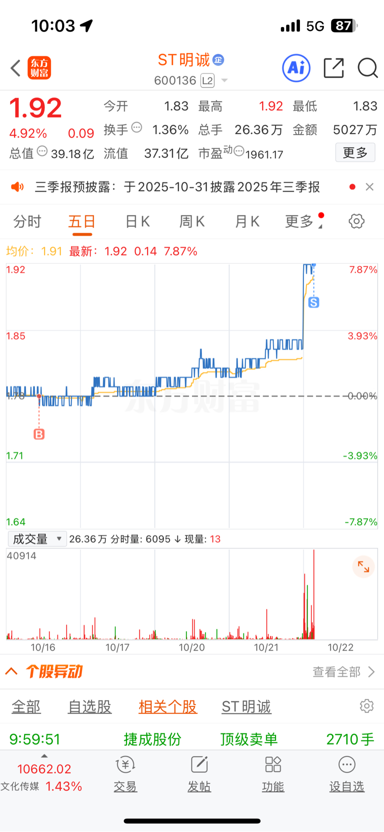 $ST明诚(SH600136)$ 涨停顶不住就撤了算了