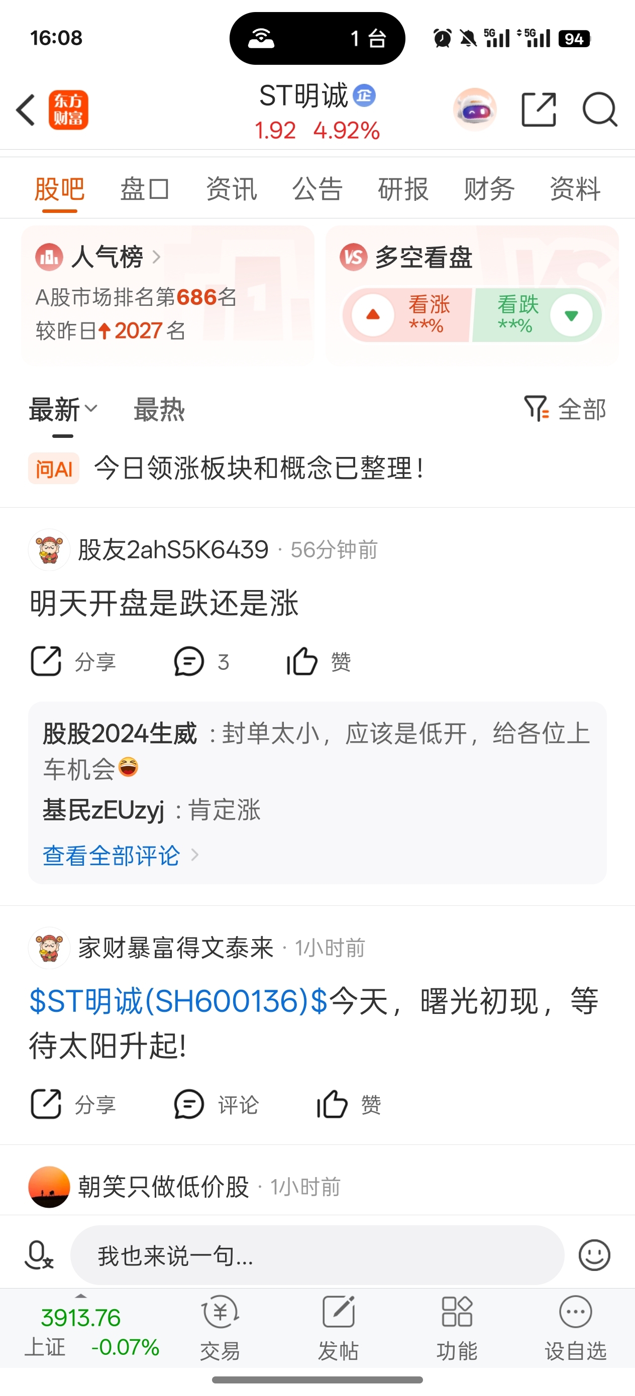 温馨提示: 1.根据《证券法》规定,禁止编造、传播虚假信息或者误导性信息,扰乱证券市场;2.用户在本社区发表的所有资料、言论等仅代表个人观点,与本网站立场无关,不对您构成任何投资建议。用户应基于自己的独立判断,自行决定证券投资并承担相应风险。《东方财富社区管理规定》