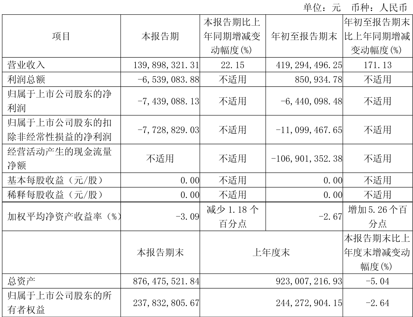 中证智能财讯 ST明诚(600136)10月31日披露2025年第三季度报告。前三季度公司实现营业总收入4.19亿元,同比增长171.13%;归母净利润亏损644.01万元,上年同期亏损2850.91万元;扣非净利润亏损1109.95万元,上年同期亏损2166.99万元;经营活动产生的现金流量净额为-1.07亿元,上年同期为-9038.87万元;报告期内,ST明诚加权平均净资产收益率为-2.67%。