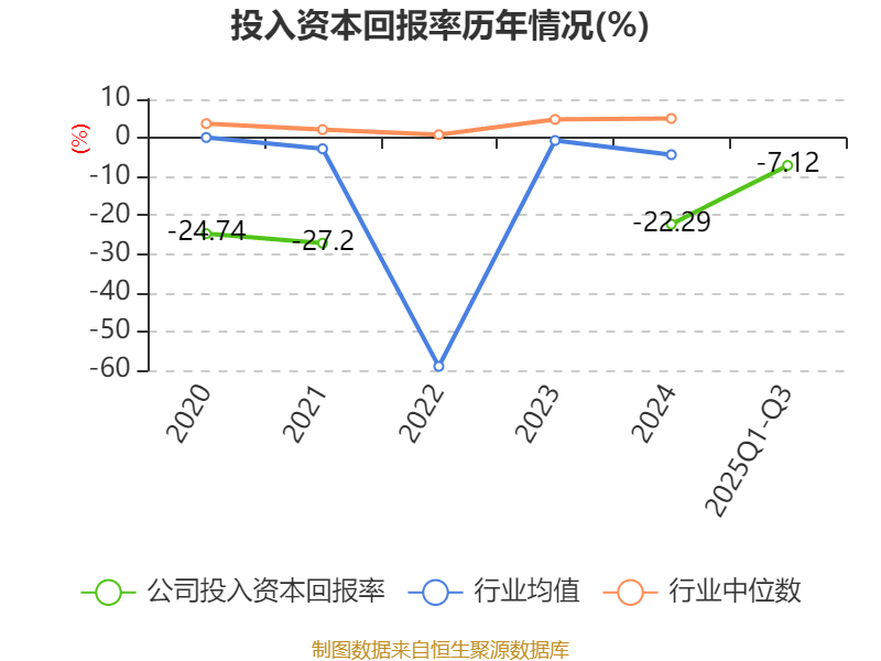 盈利能力方面, 2025年前三季度公司加权平均净资产收益率为-2.67%,同比上升5.26个百分点。公司2025年前三季度投入资本回报率为-7.12%,较上年同期上升1.65个百分点。