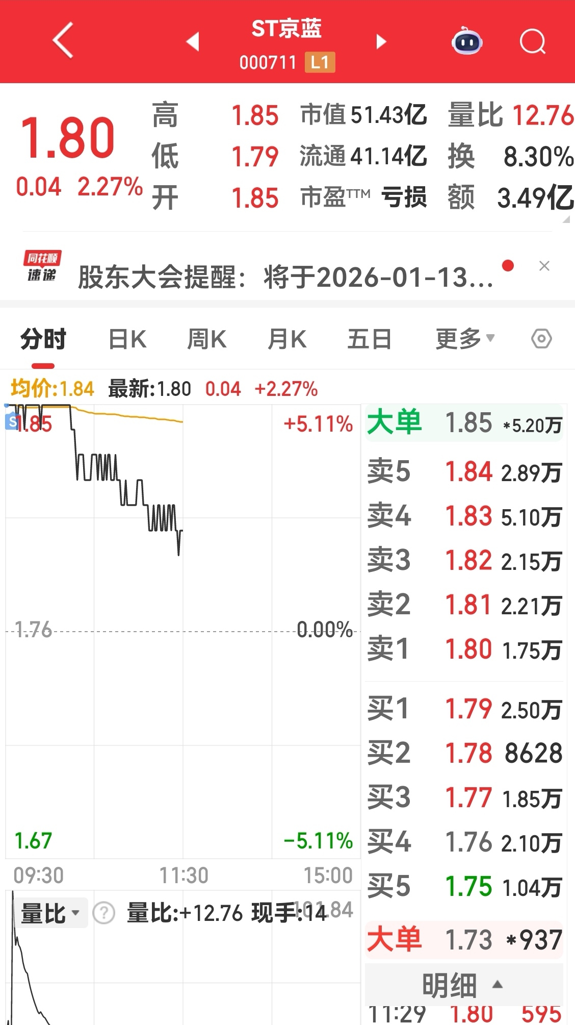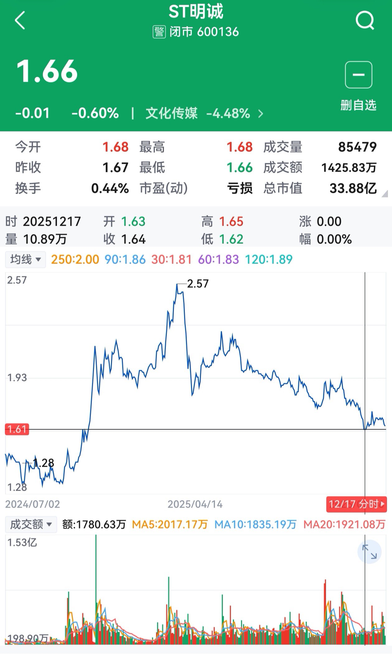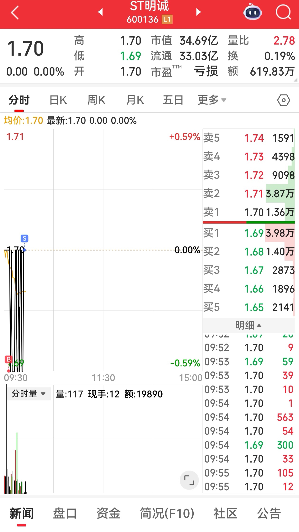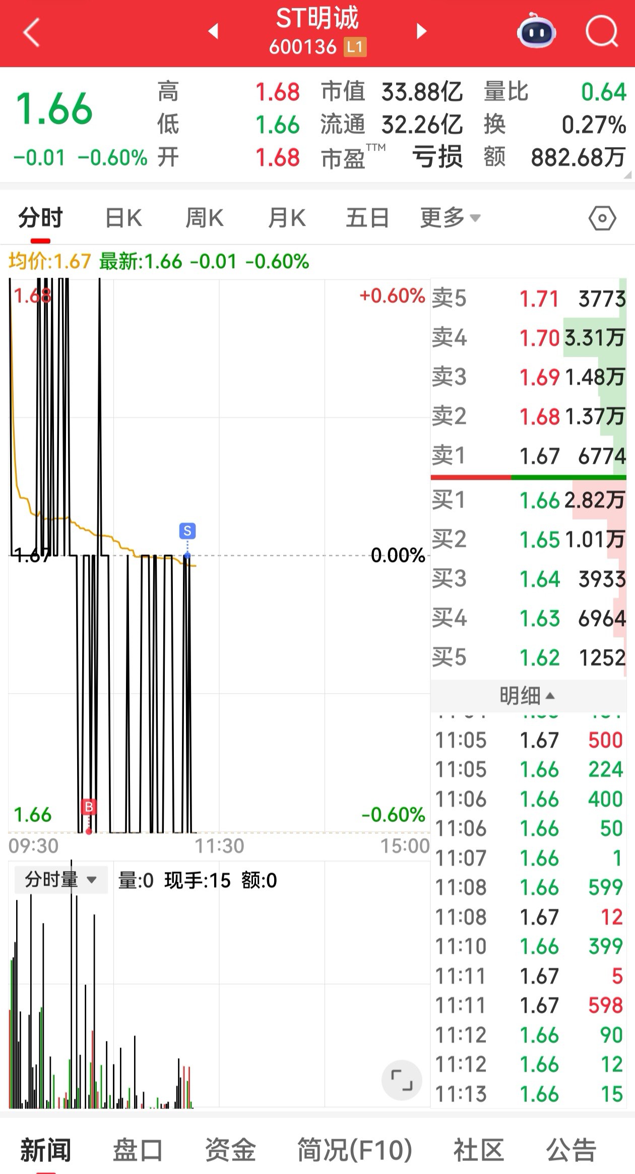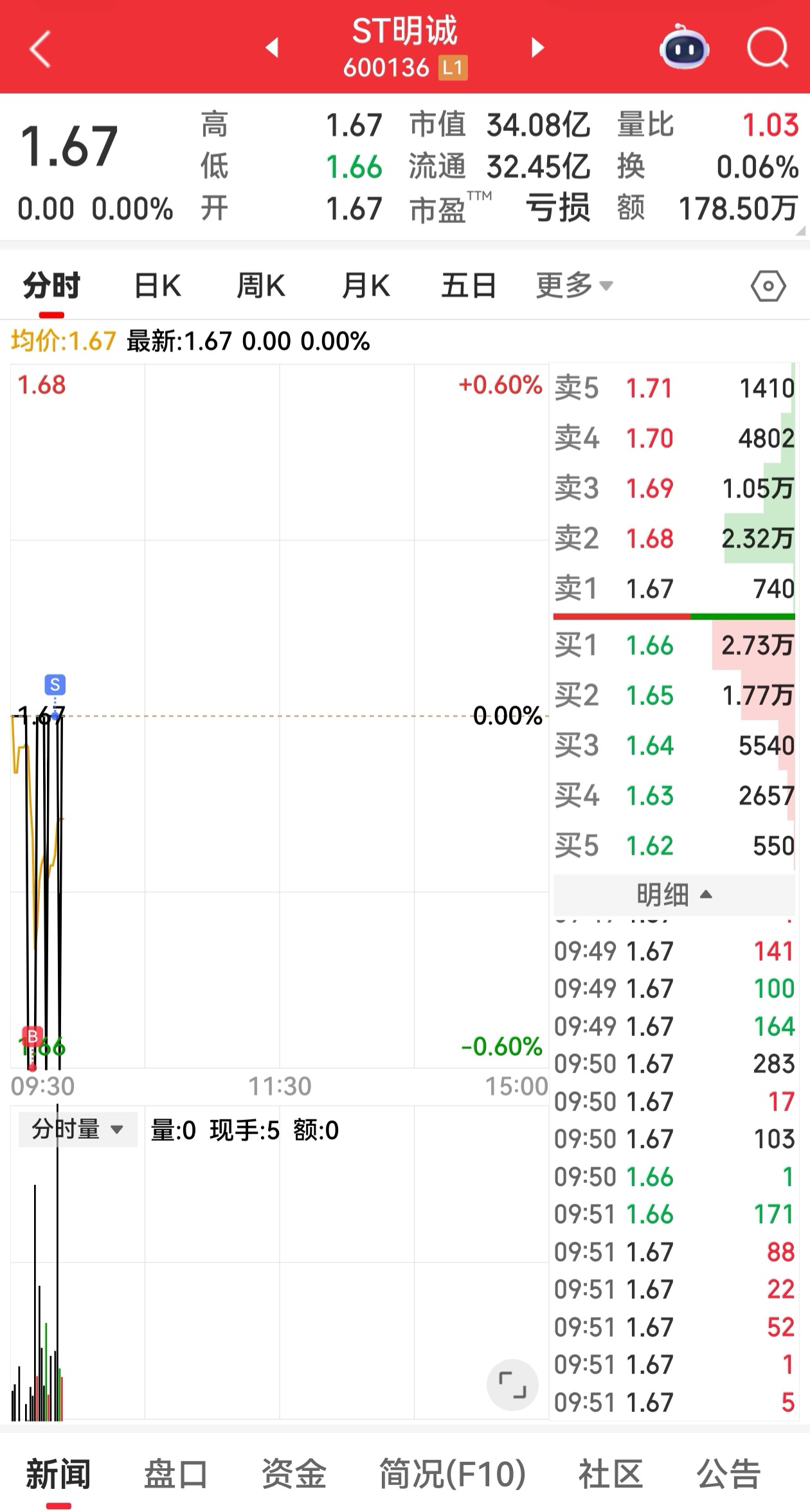 ST明诚,60分钟K线形态与均线形成脚的图形,控制好仓位,适量介入。