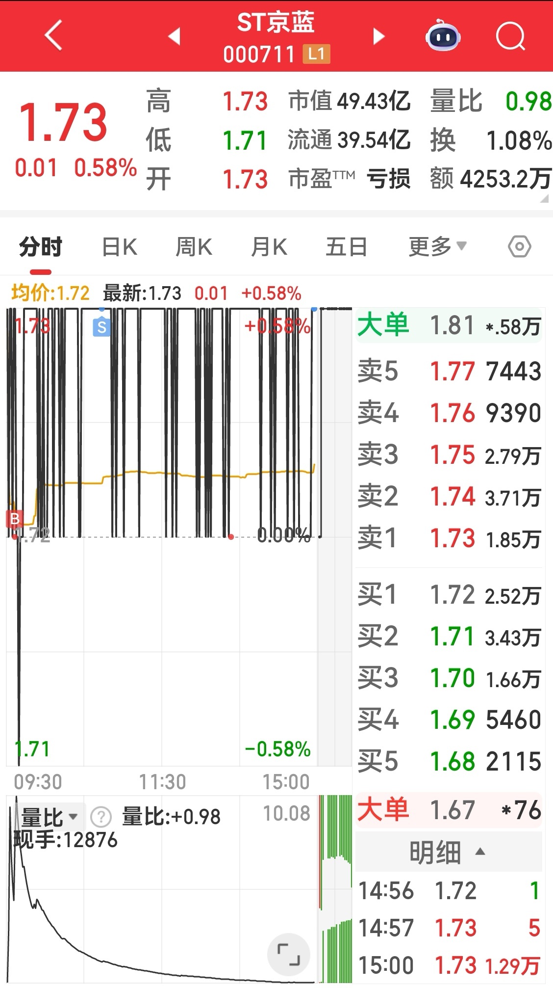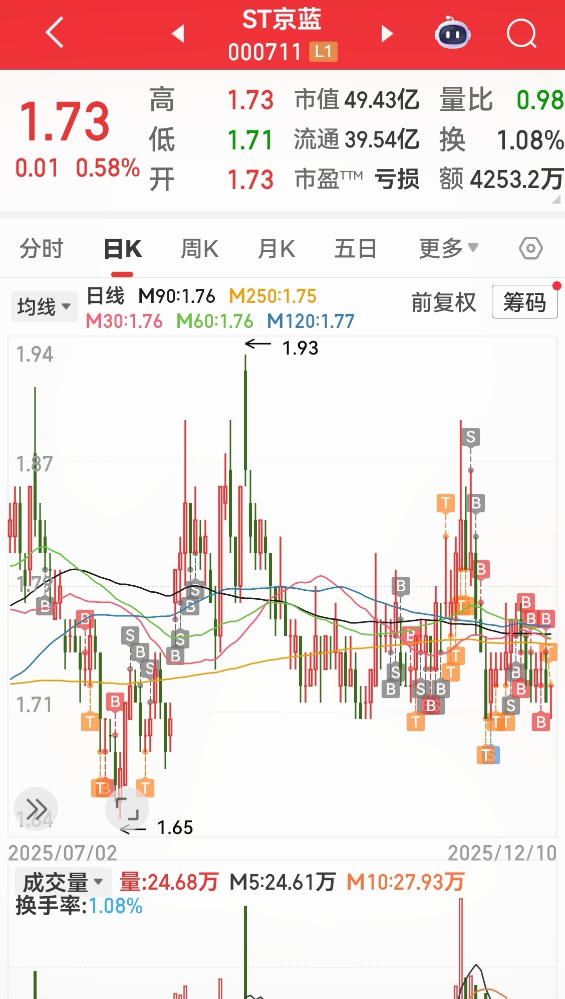 ST京蓝,把成本价控制在1.71元以下就可以赚钱了
