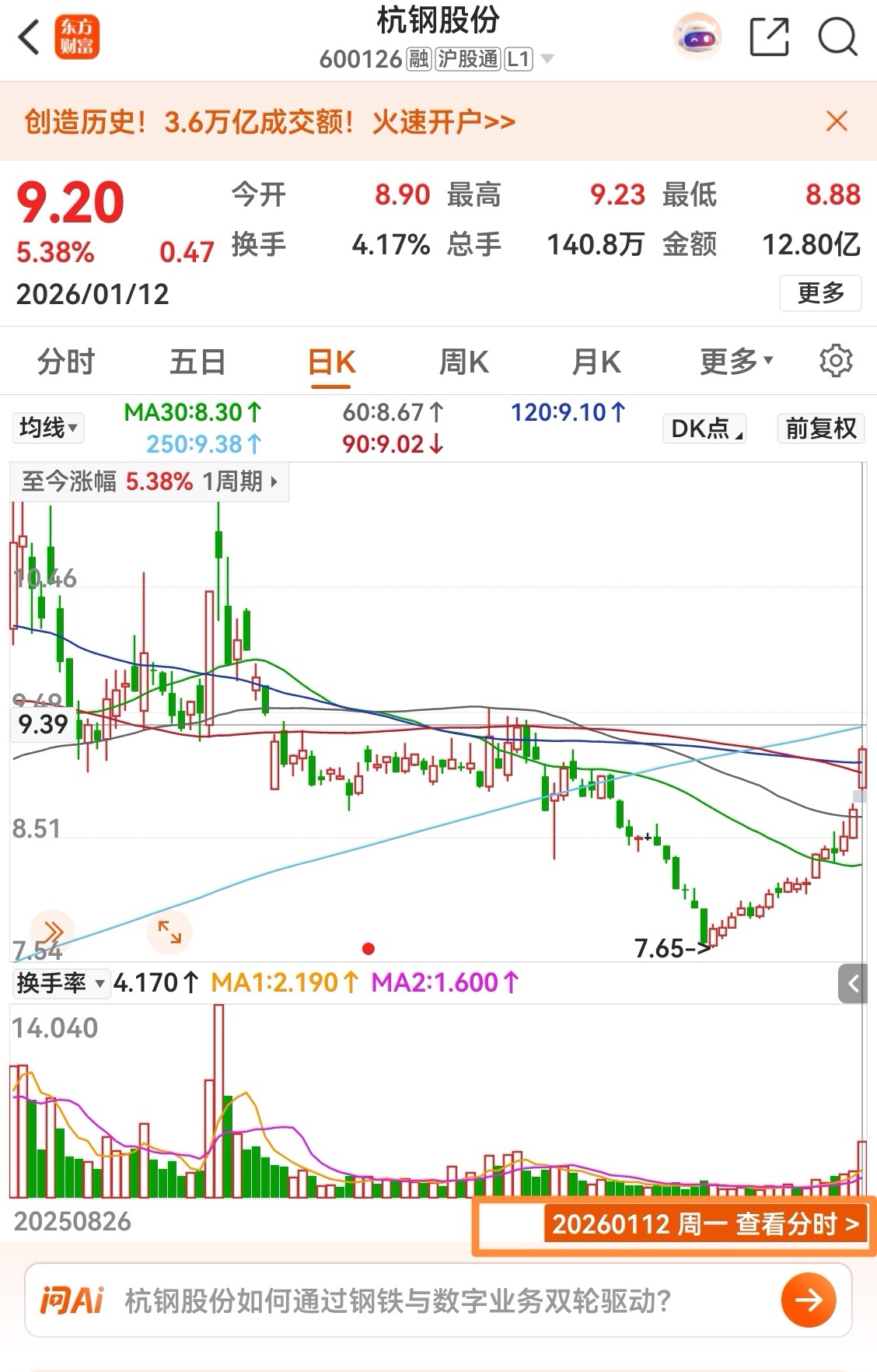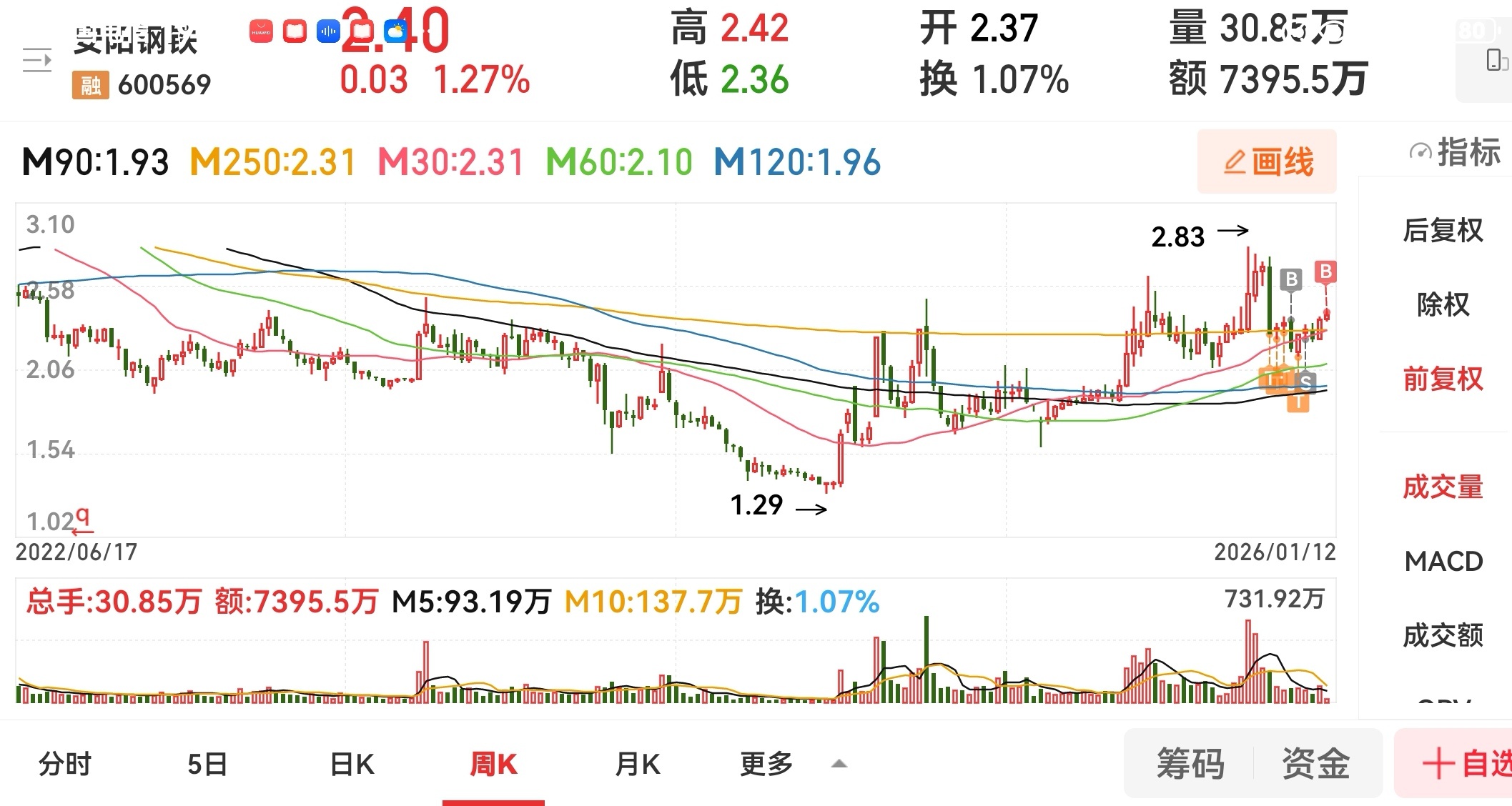 安阳钢铁,周K线与均线形成像一只脚的形态。