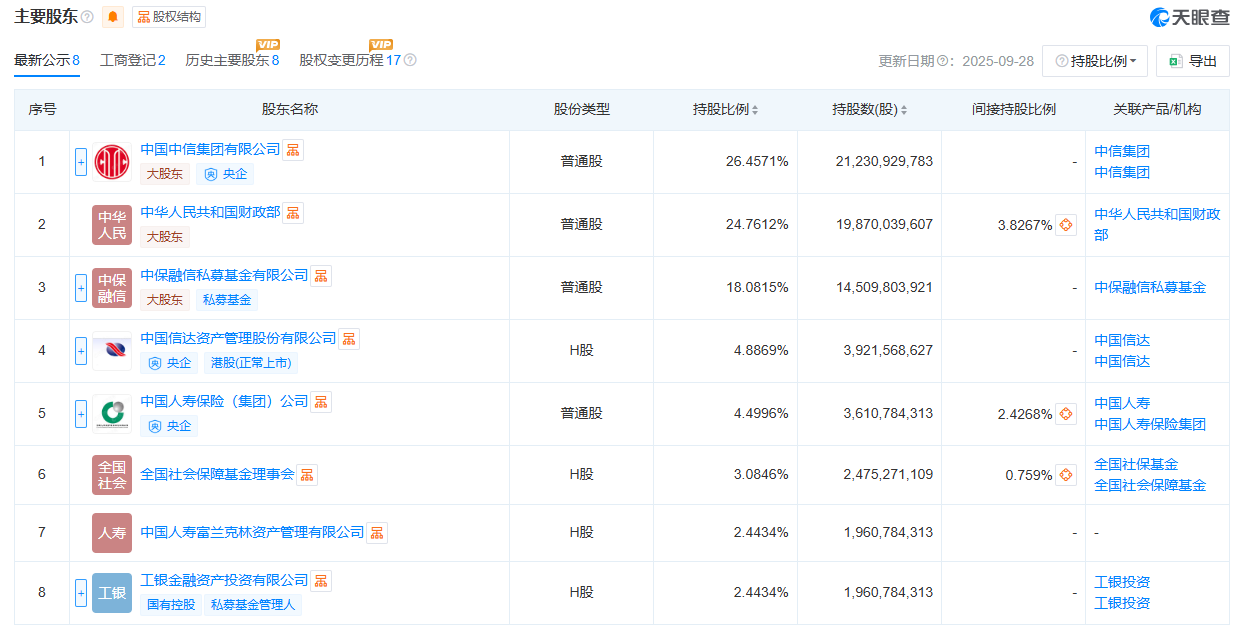中国中信金融资产管理股份有限公司(曾用名:中国华融资产管理股份有限公司)受让了4,088.9554 万股股份