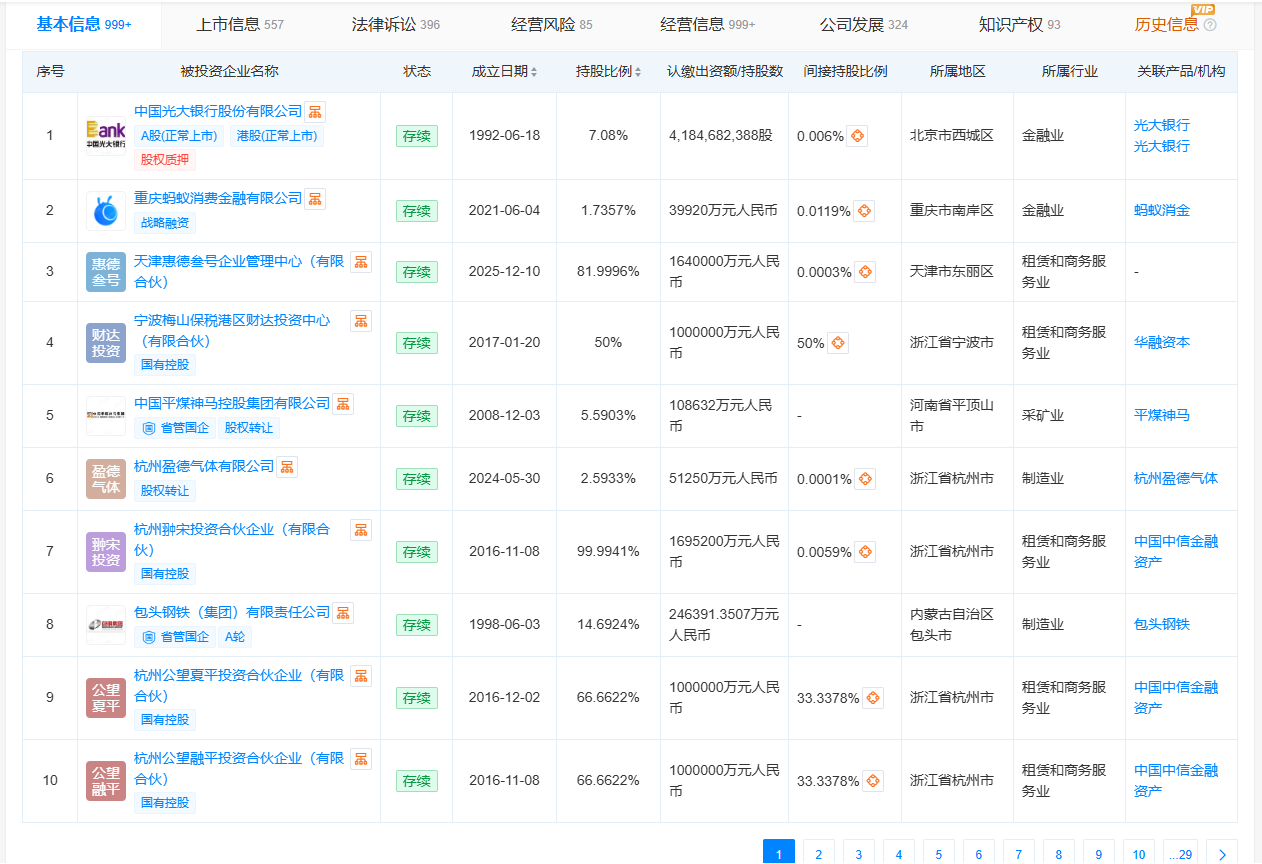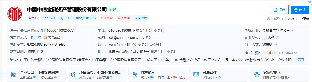中国中信金融资产管理股份有限公司(曾用名:中国华融资产管理股份有限公司)受让了4