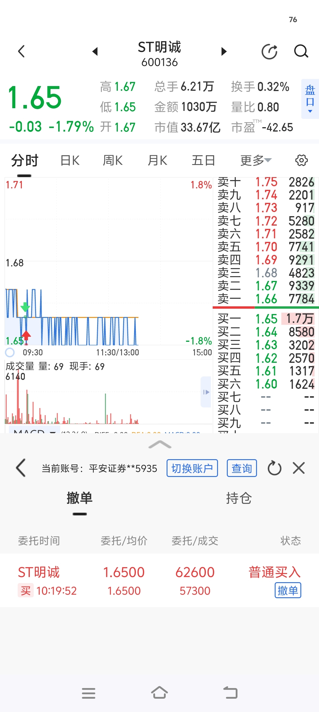 $ST明诚(SH600136)$ 兄弟们,我以经在为你们扛塔了