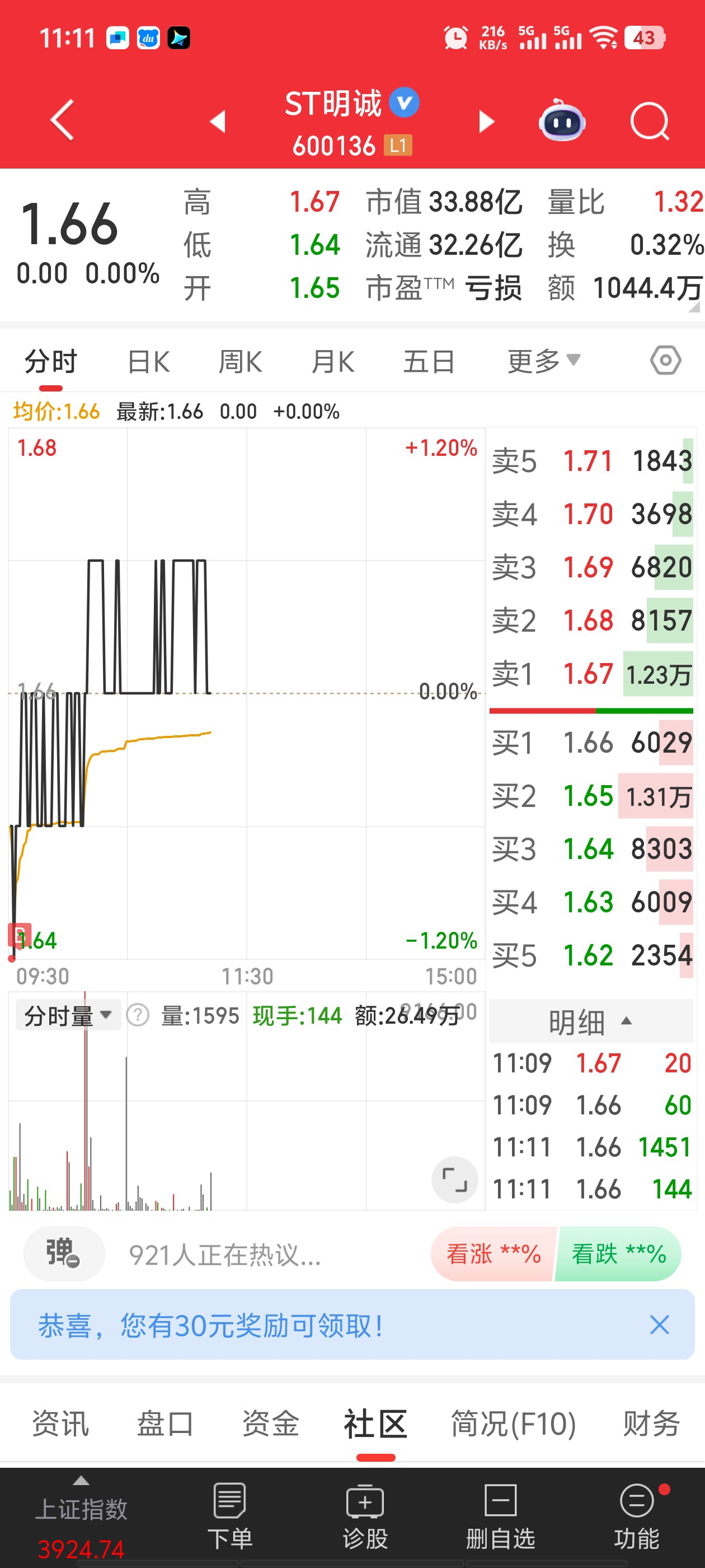 $ST明诚(SH600136)$ 呵呵 你砸得下去?我就托着,不托我也随时偷你,把你偷光